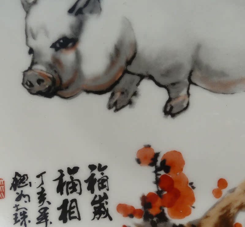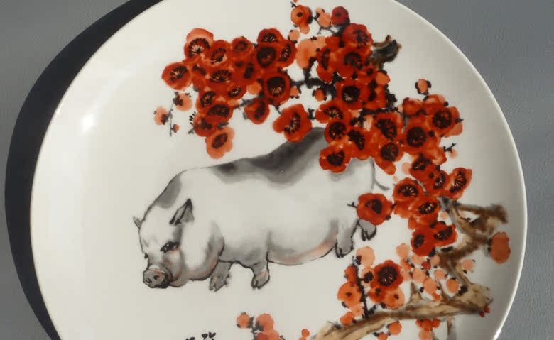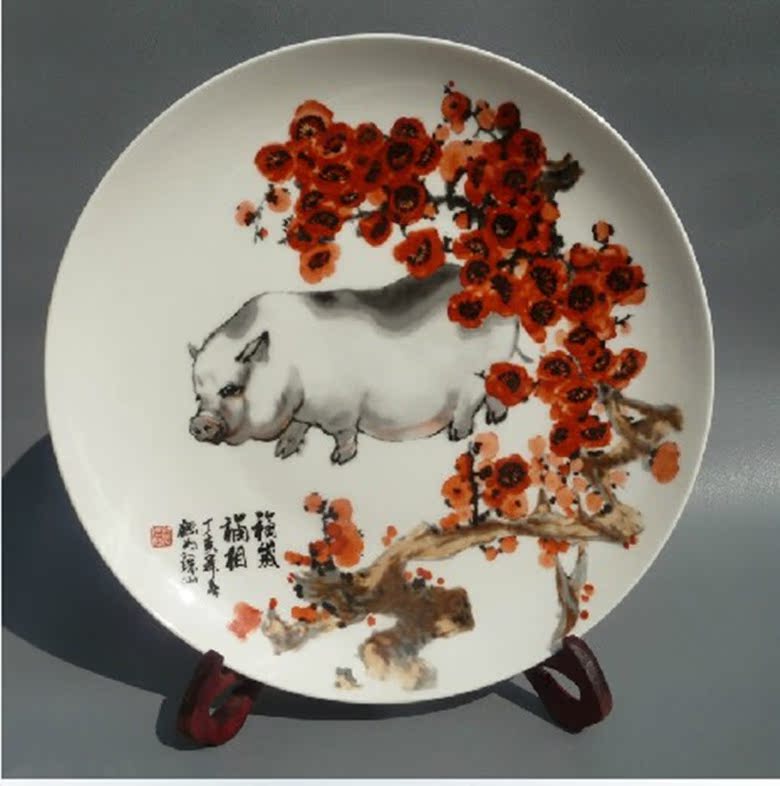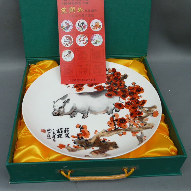 陶瓷10寸盤 生肖盤 招財豬彩盤 居家裝飾擺件工藝品1入