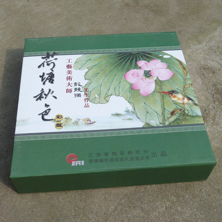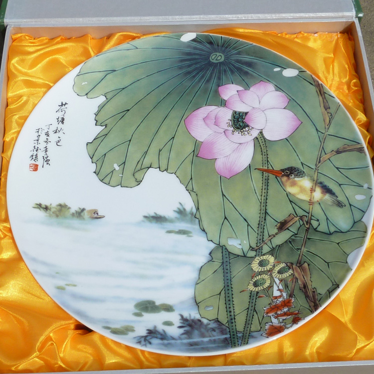 瓷器 工藝彩盤荷塘秋色瓷盤 花盤裝飾盤擺件家居裝飾工藝品1入