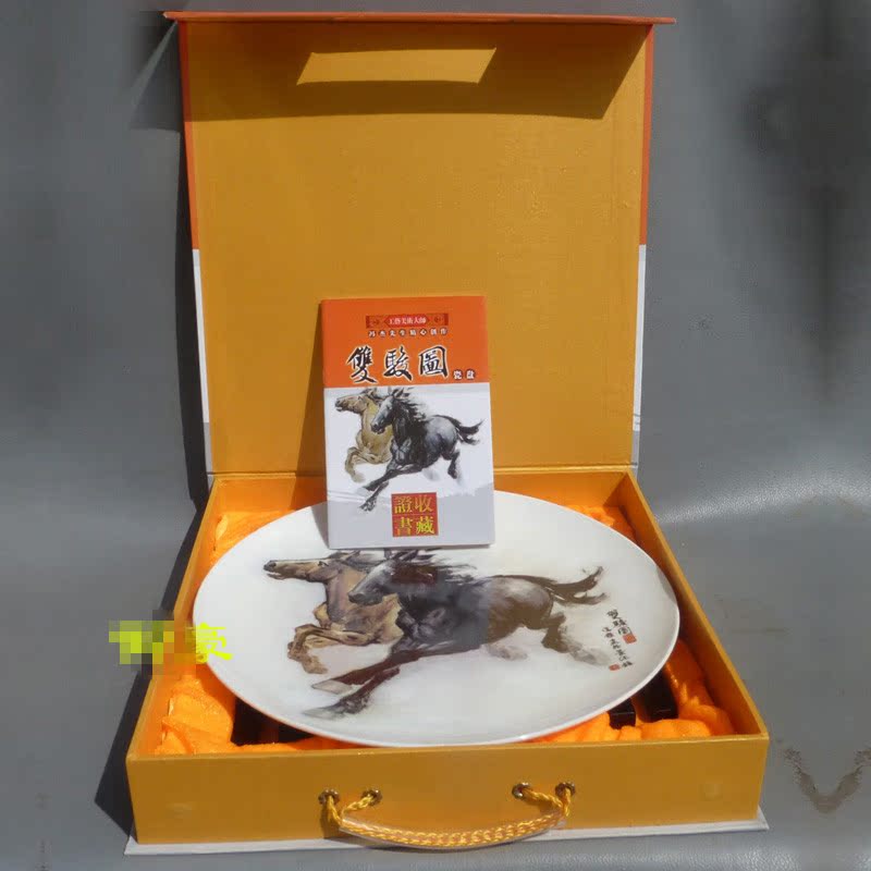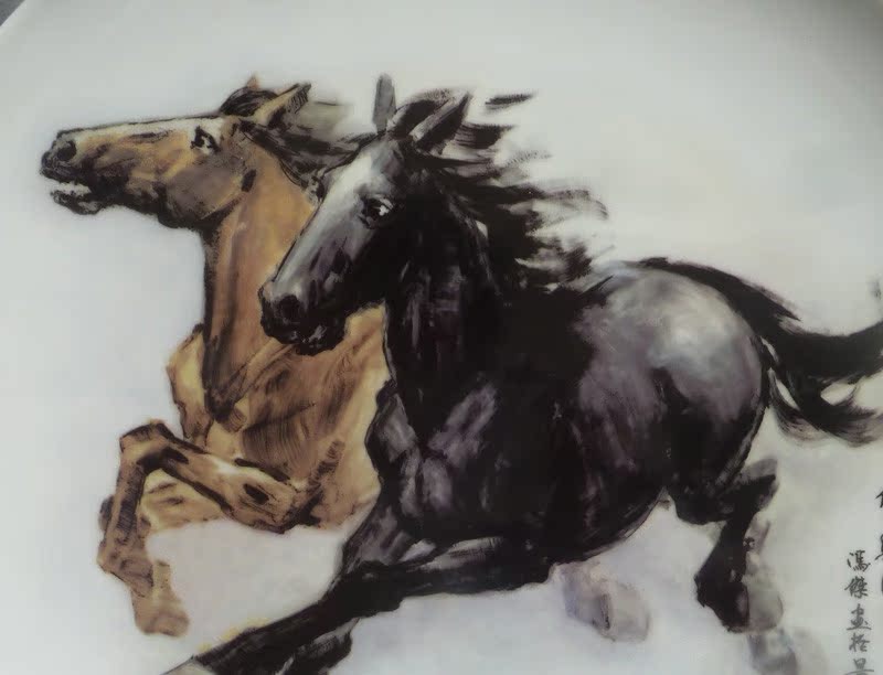瓷器 大師生肖雙駿瓷盤 生肖馬掛盤 家居裝飾擺件工藝品1入