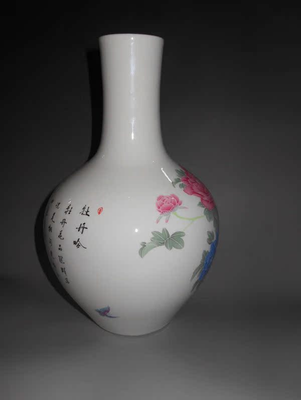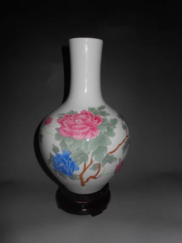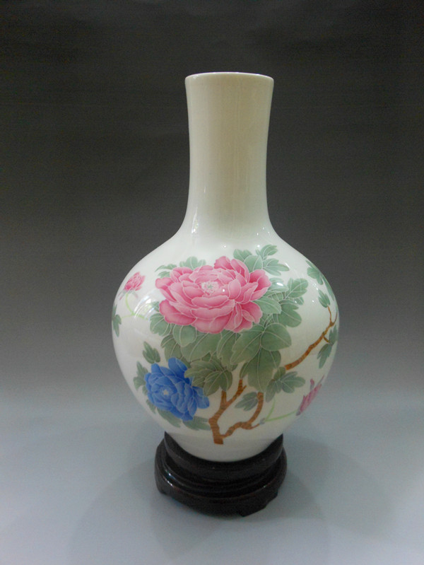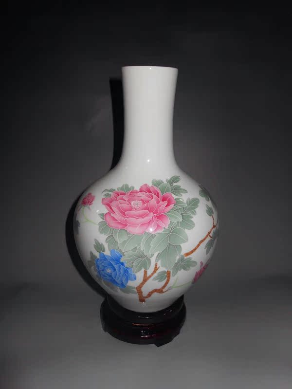 陶瓷 高檔釉下五彩臺面花瓶 插花花瓶裝飾品擺設家居1入