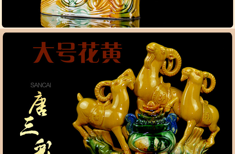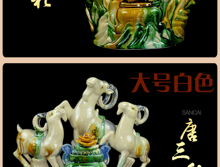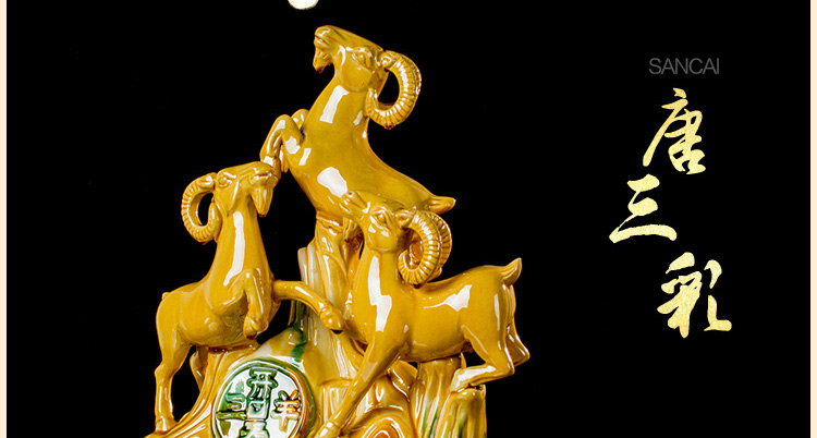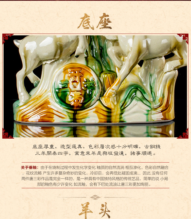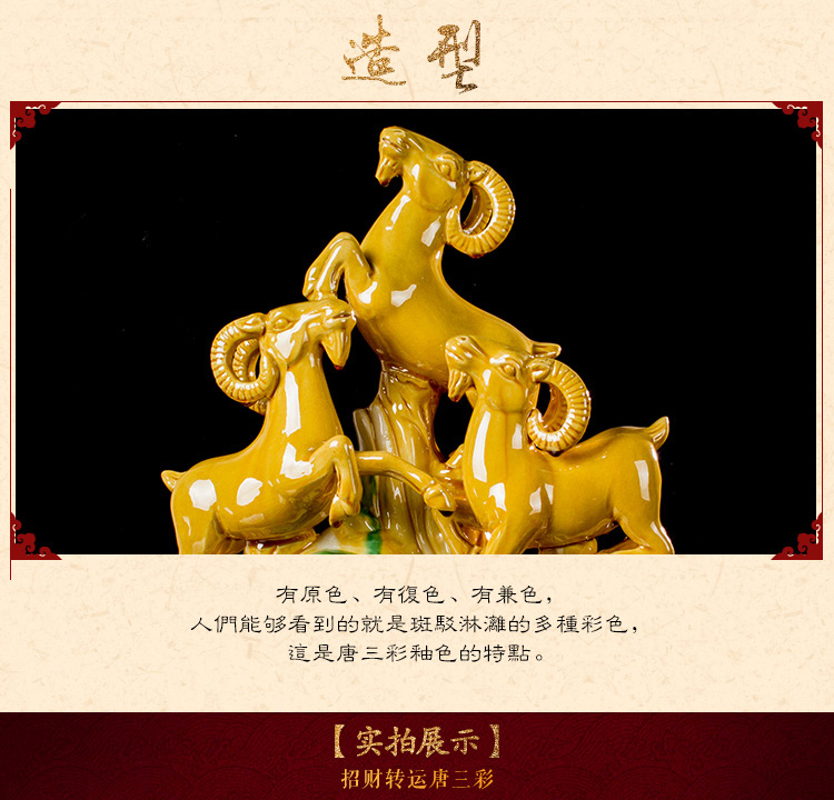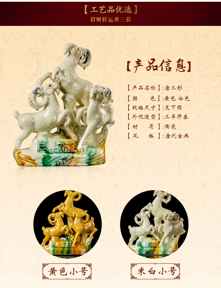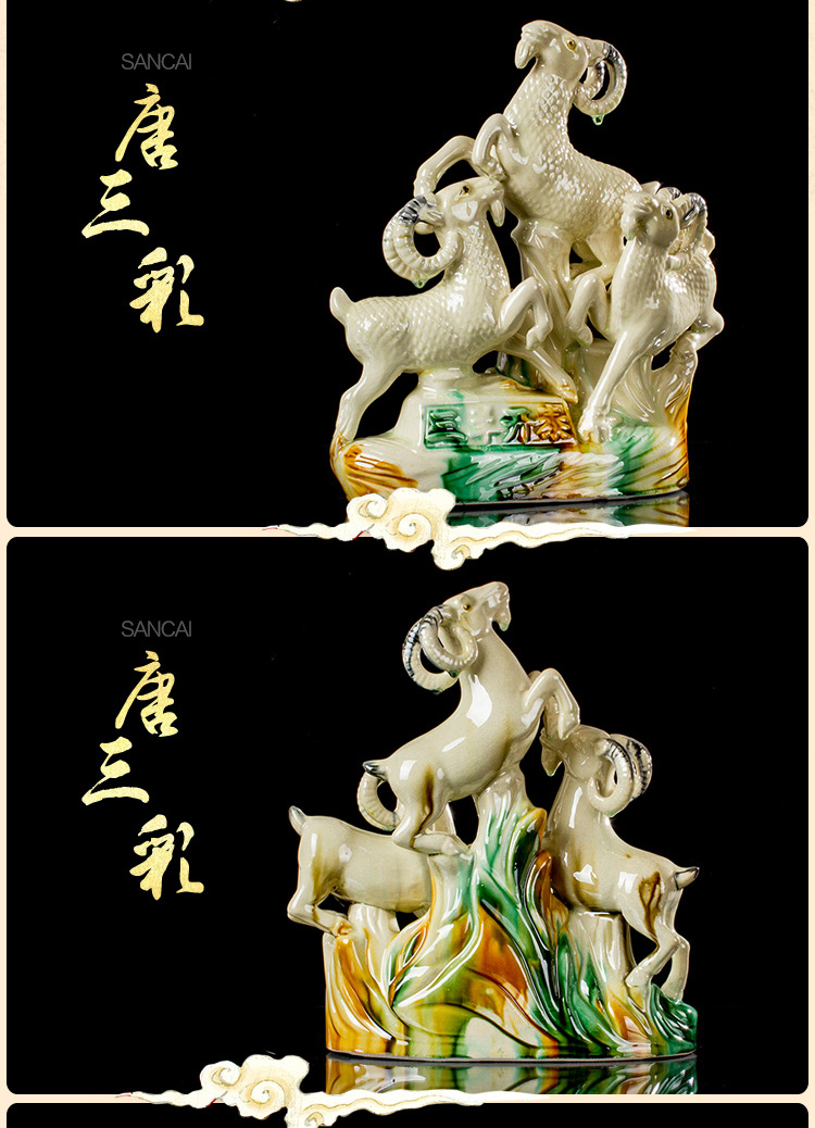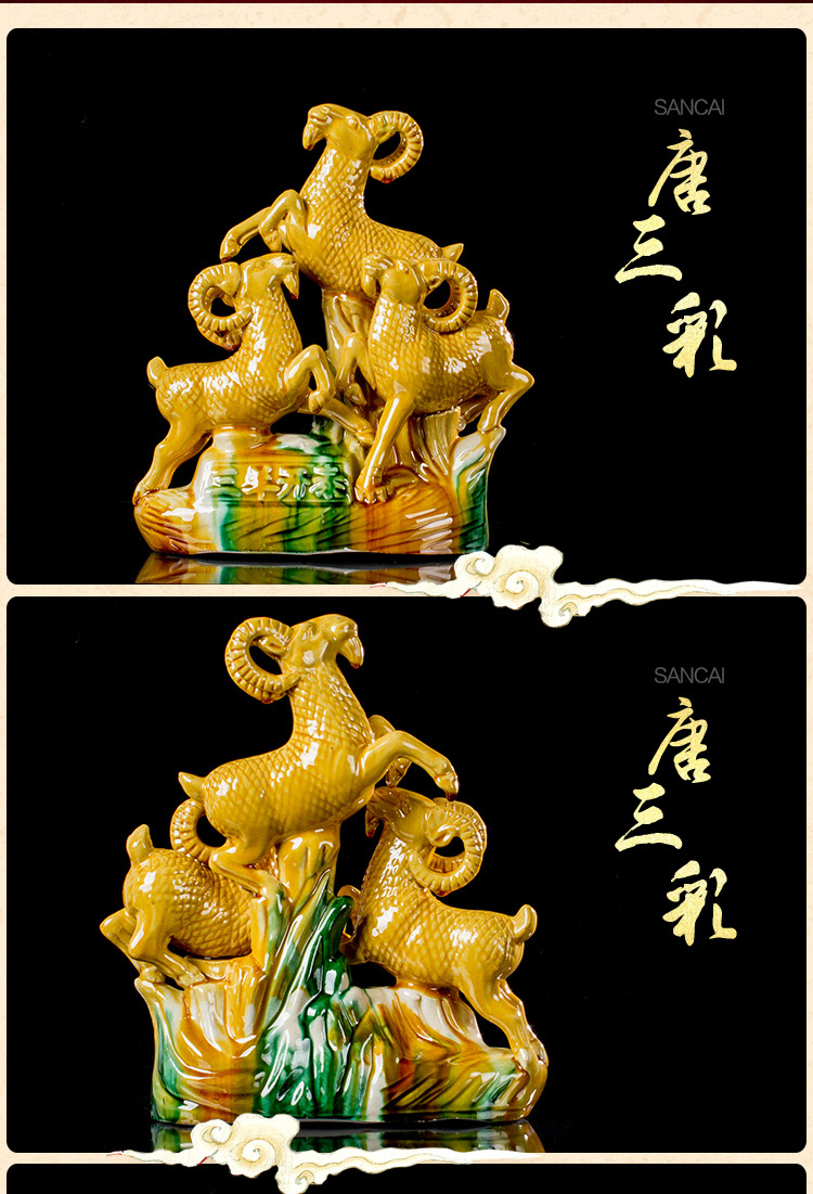 唐三彩羊陶瓷三羊開泰擺件風水招財工藝品羊禮品家居裝飾品生肖羊1入