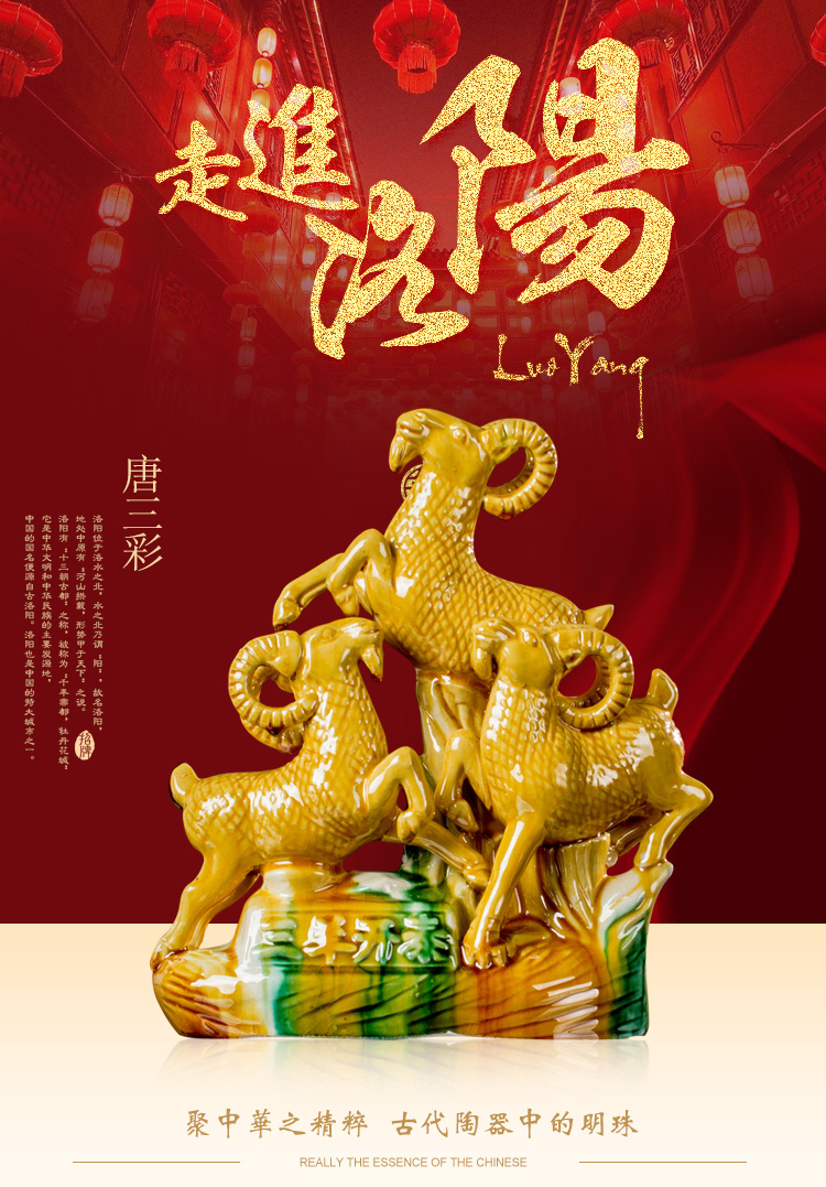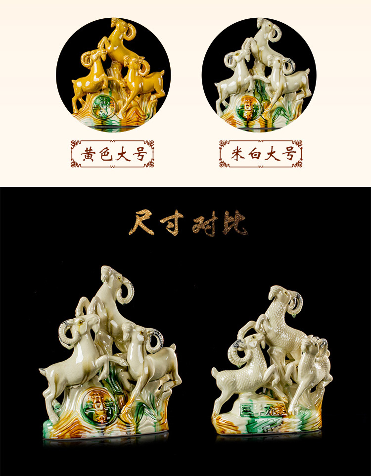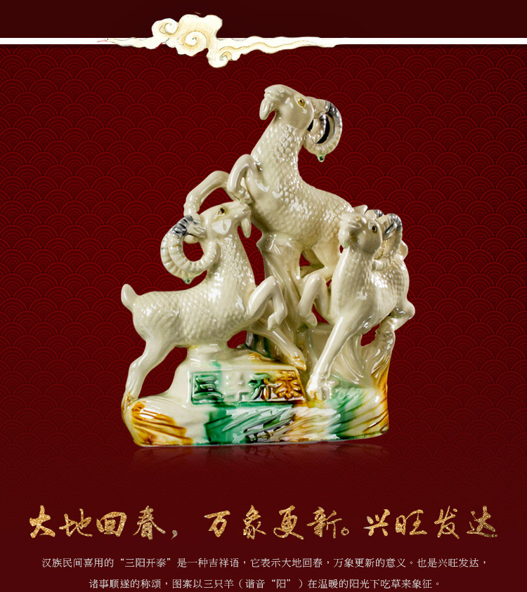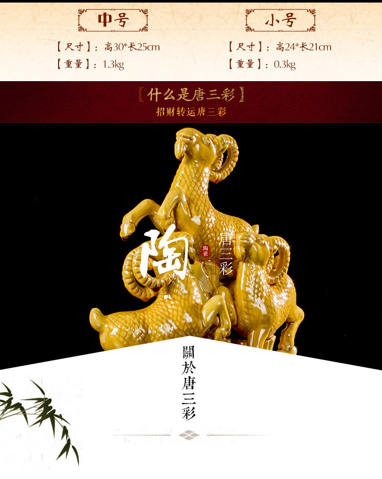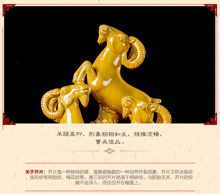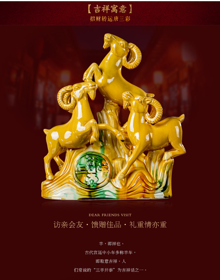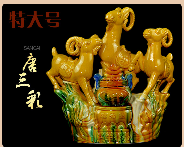 唐三彩羊陶瓷三羊開泰擺件風水招財工藝品羊禮品家居裝飾品生肖羊1入