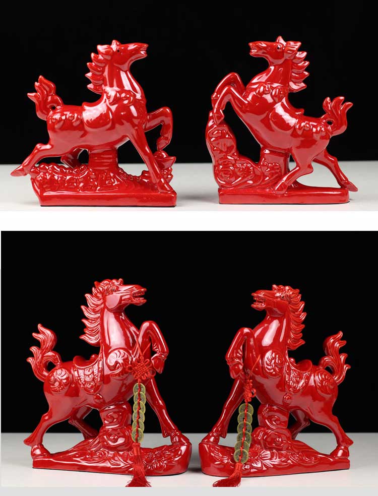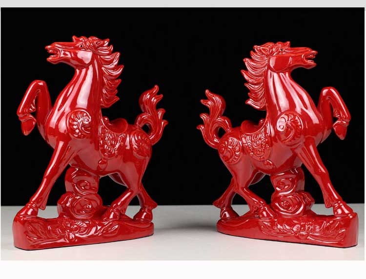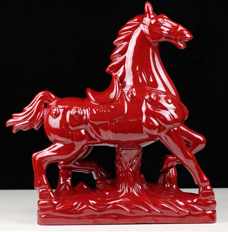 唐三彩馬陶瓷紅馬擺件家居客廳辦公室擺設風水招財馬工藝品禮品1入