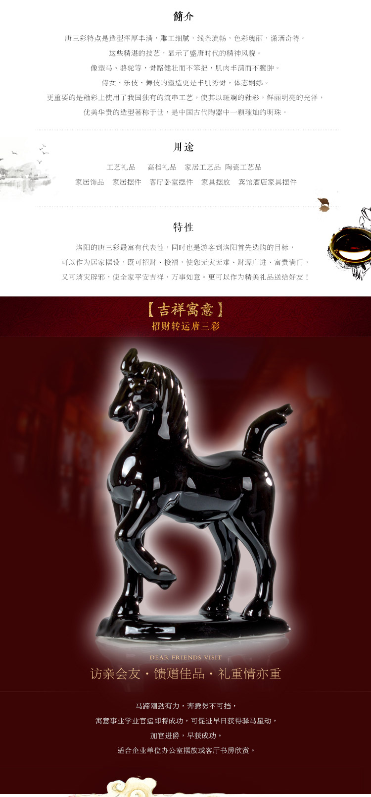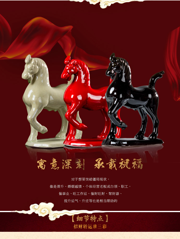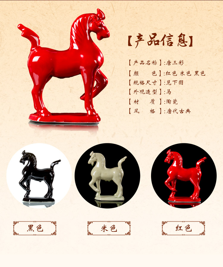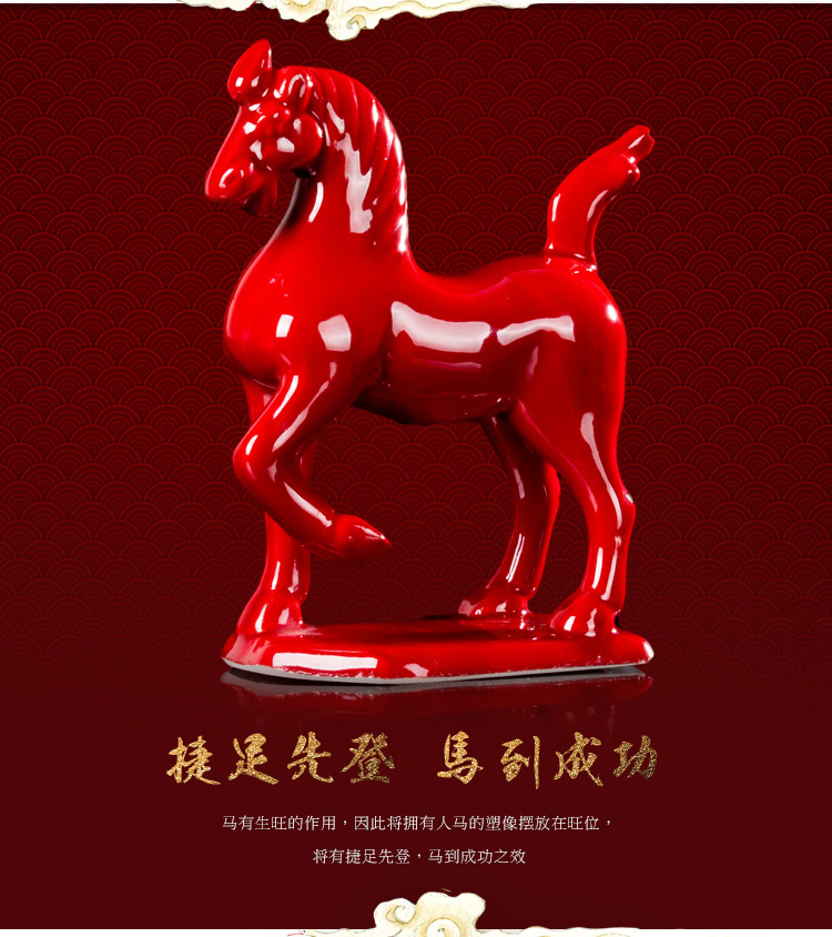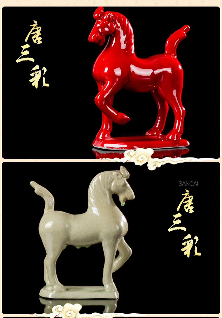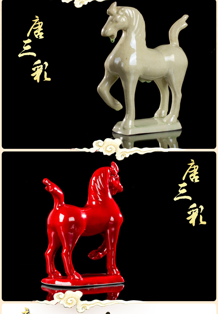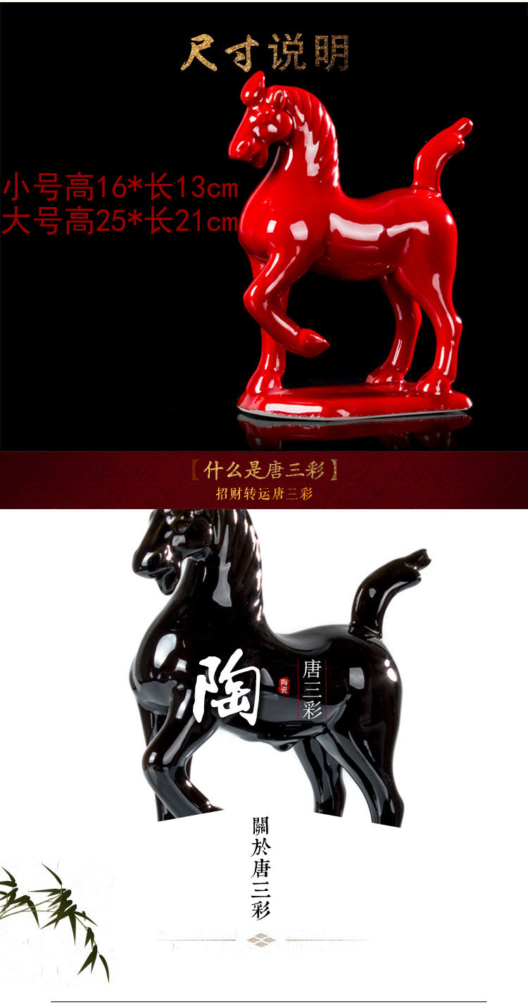 唐三彩馬 陶瓷小紅馬 工藝品擺件 家居裝飾品馬到成功 招財馬1入