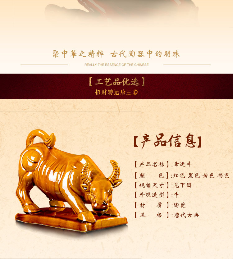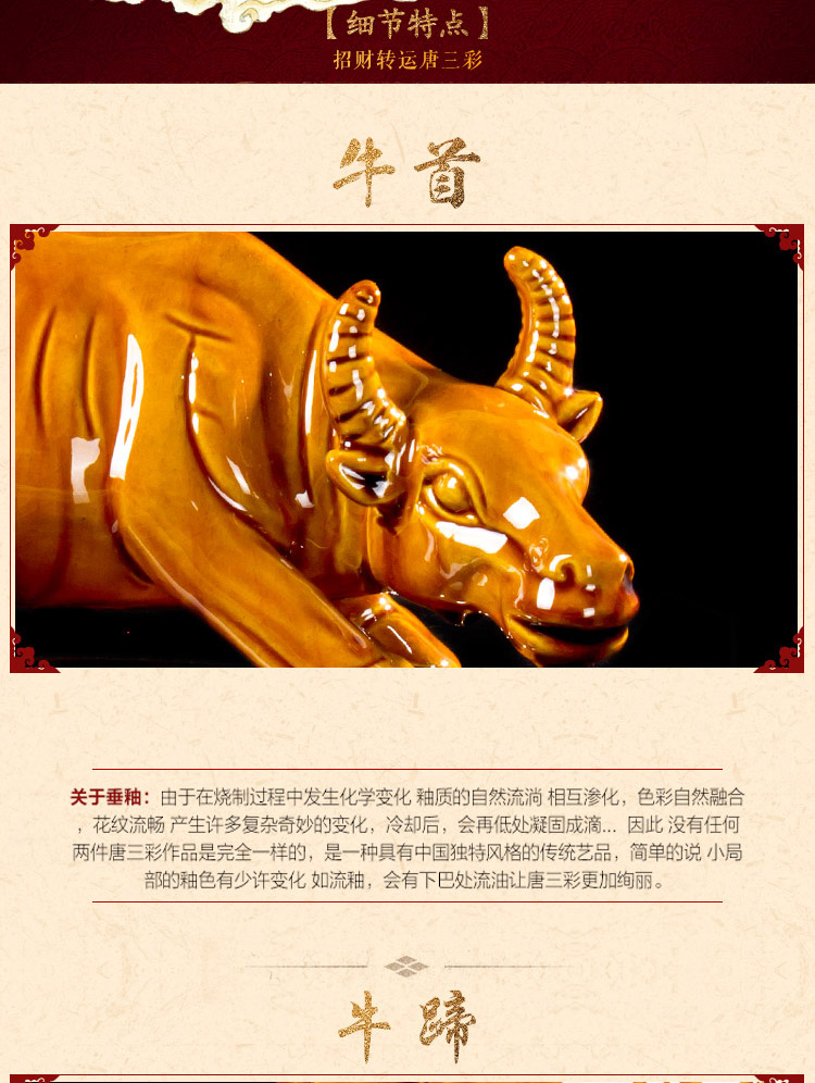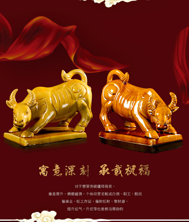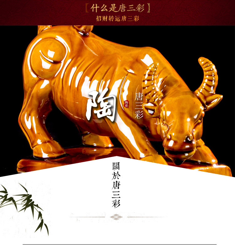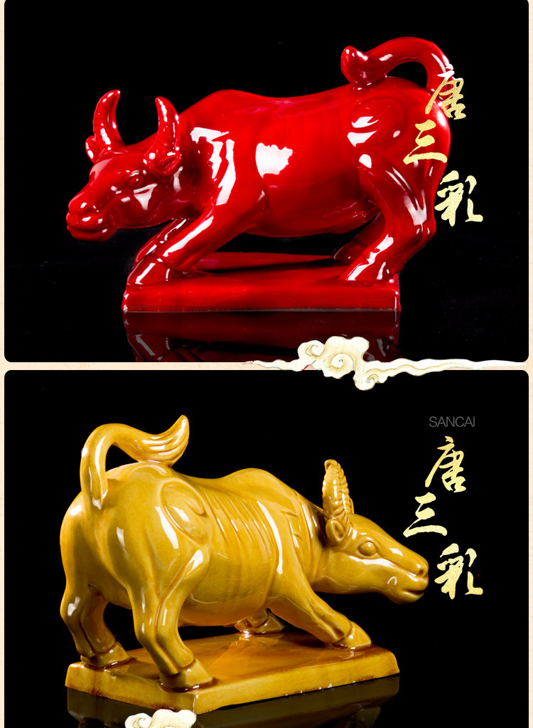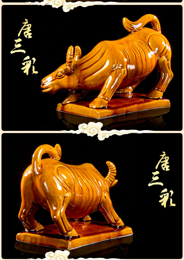 唐三彩牛陶瓷黃牛擺件工藝品家居裝飾品禮品風水轉運招財牛生肖牛1入