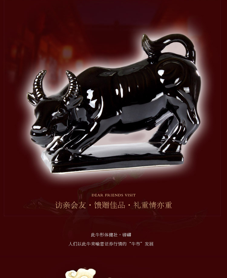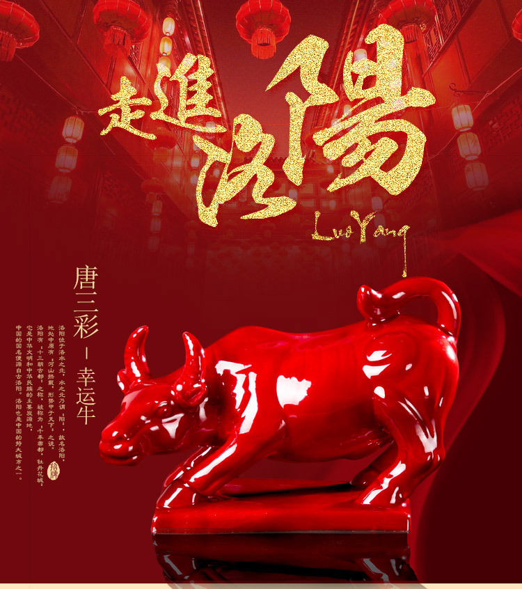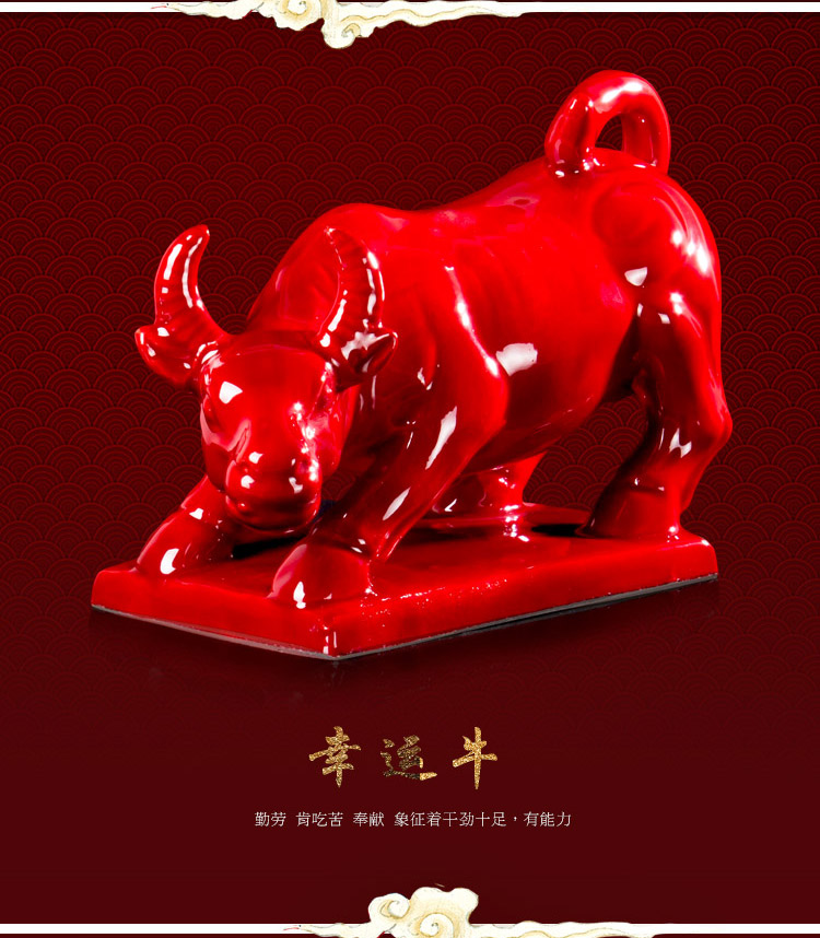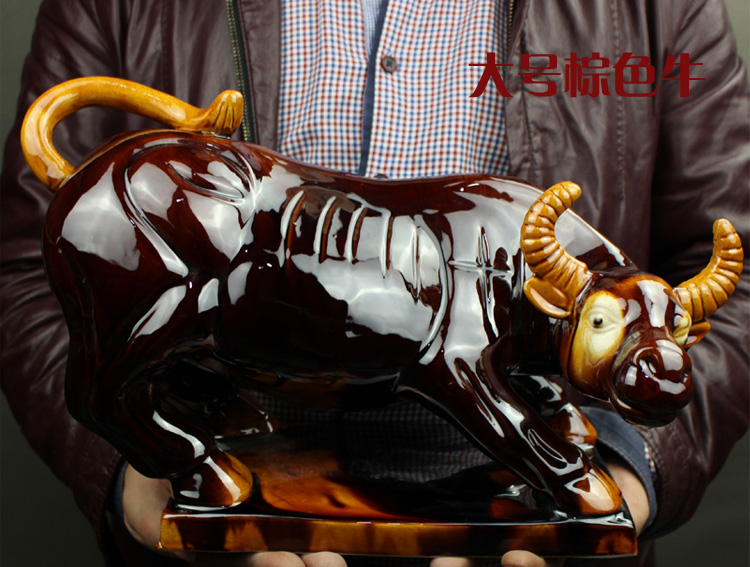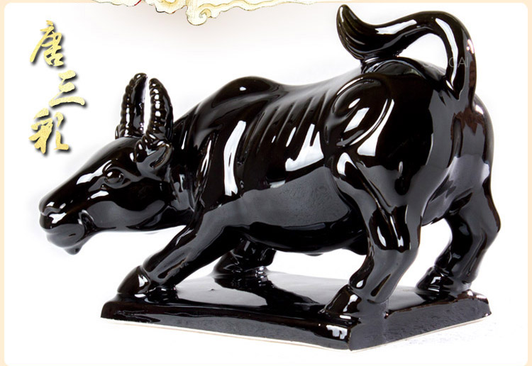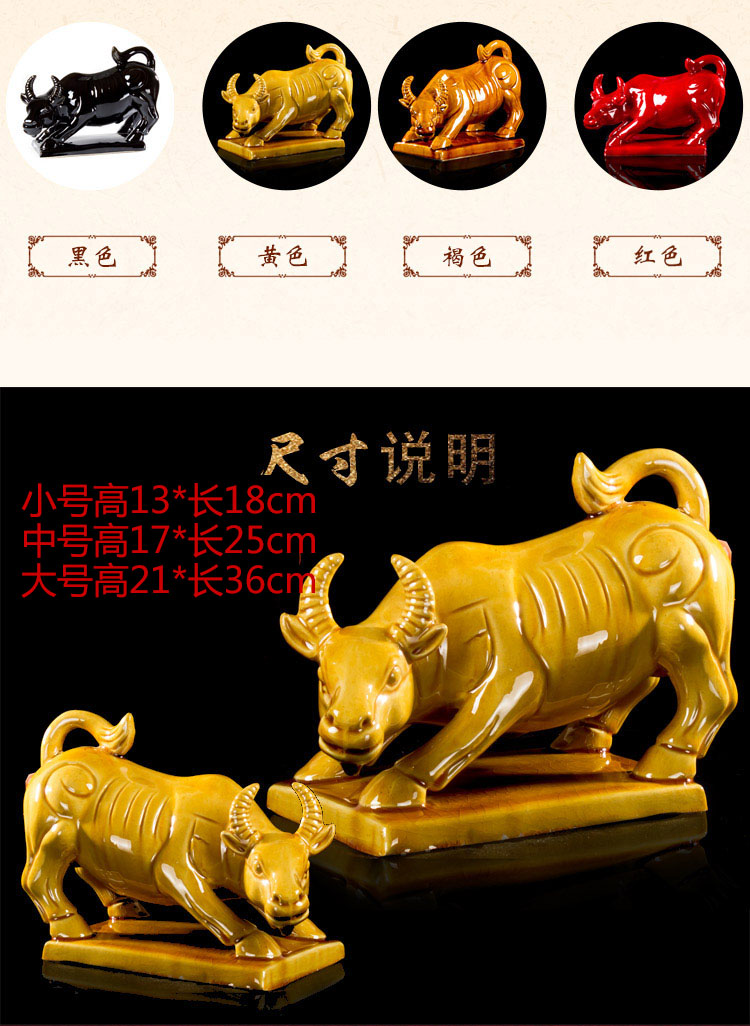 唐三彩牛陶瓷黃牛擺件工藝品家居裝飾品禮品風水轉運招財牛生肖牛1入