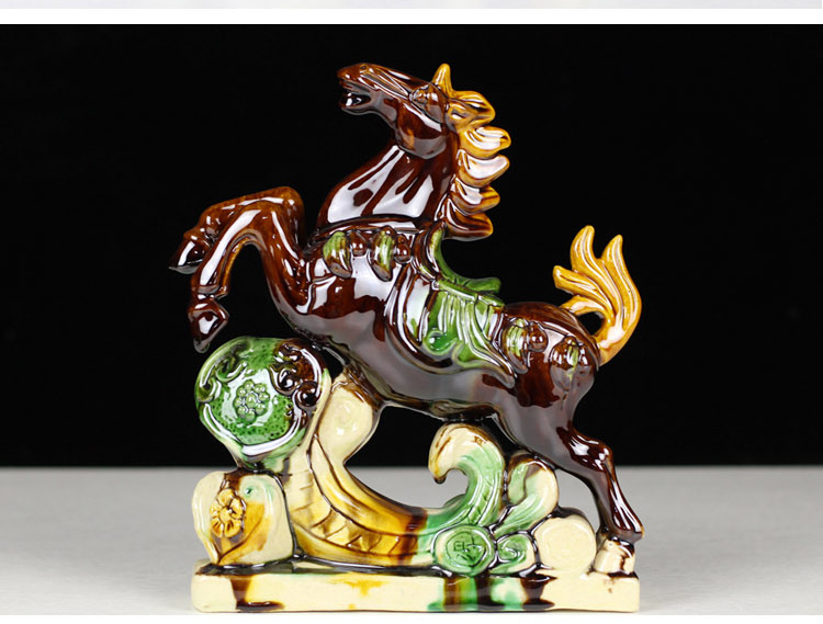 唐三彩馬陶瓷馬擺件風水家居裝飾品紅色瓷馬客廳辦公室擺設招財馬1入