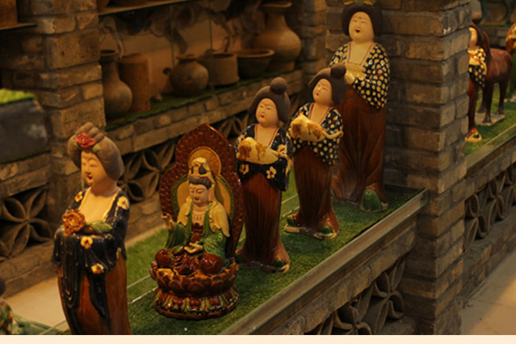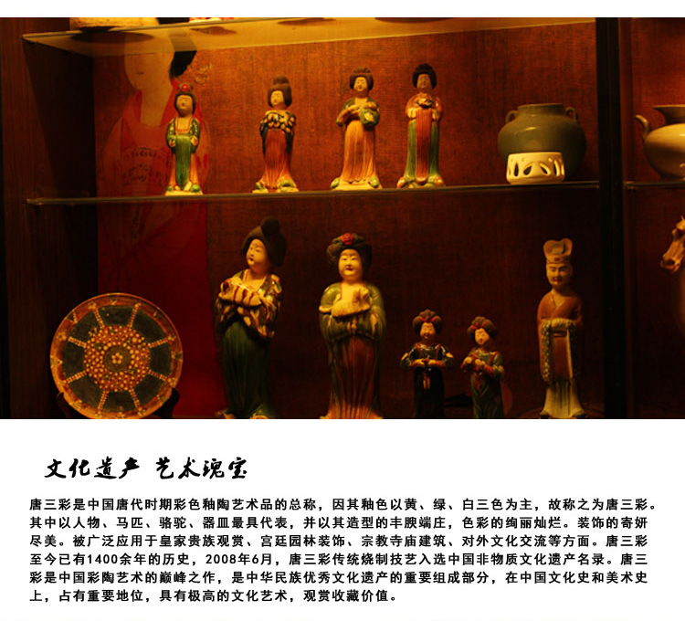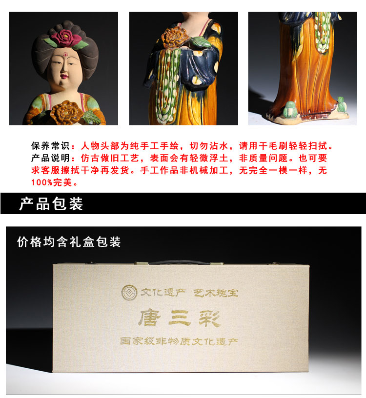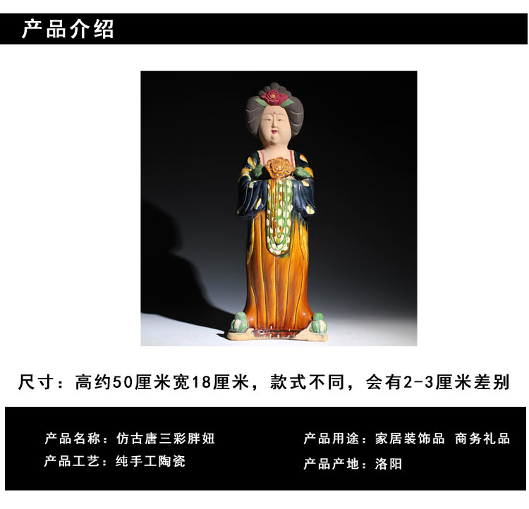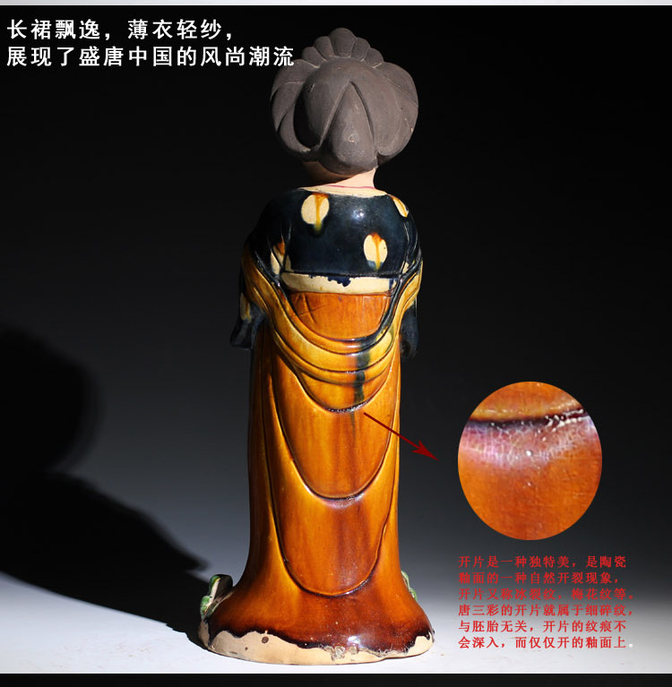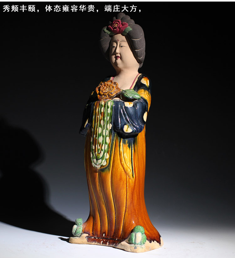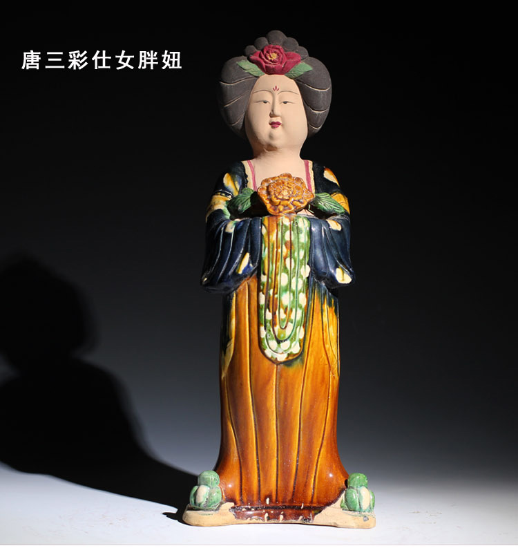 唐三彩仕女擺件電視柜博古架玄關陶瓷復古胖美女中式家居裝飾品1入