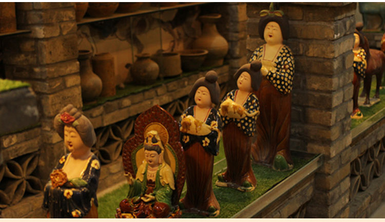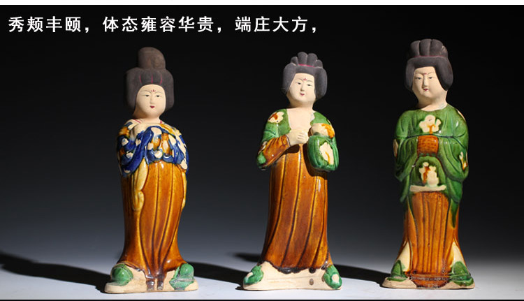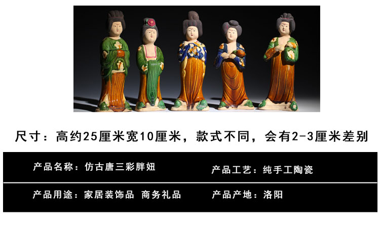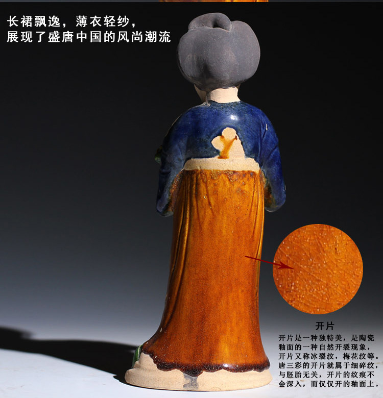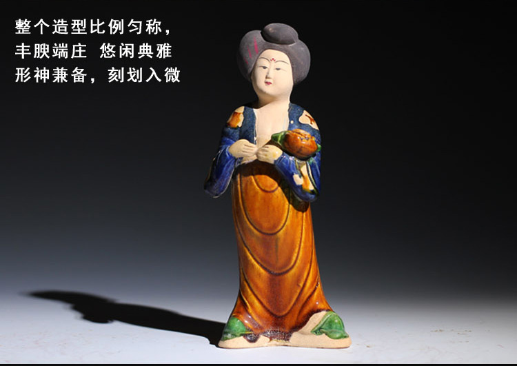 唐三彩仕女擺件電視柜博古架玄關陶瓷工藝品古典胖美女家居裝飾品1入