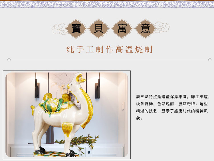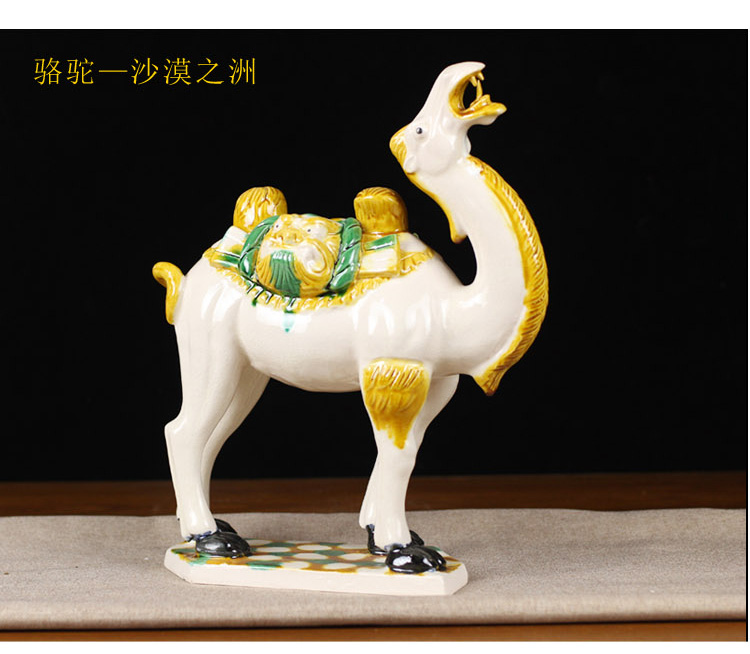 唐三彩馬駝陶瓷工藝品駱駝家居裝飾品客廳玄關馬擺件高檔商務禮品1入