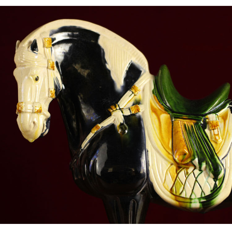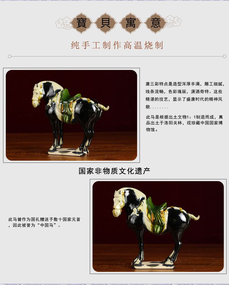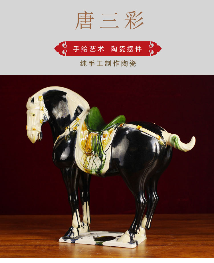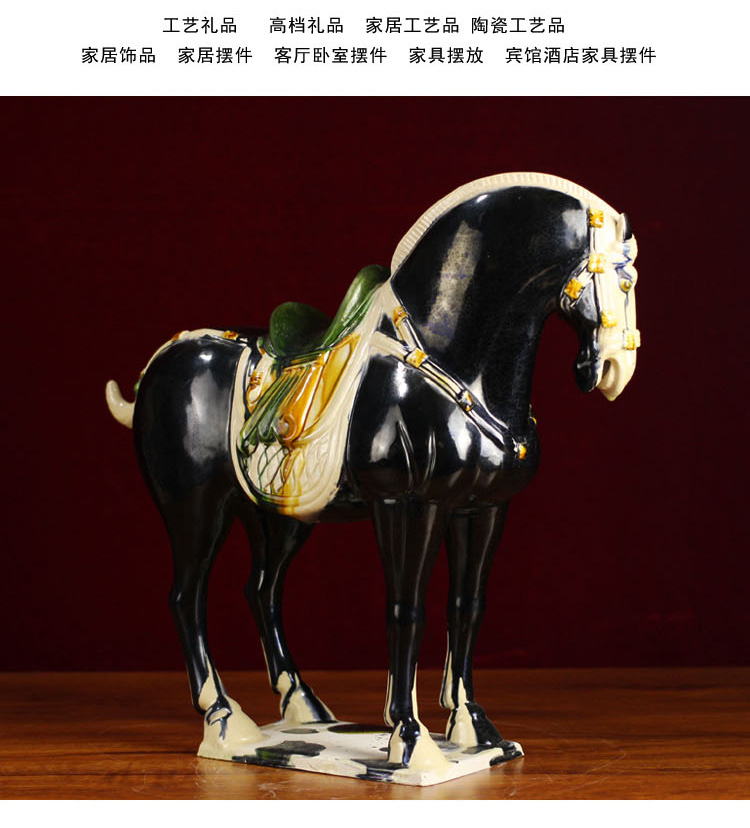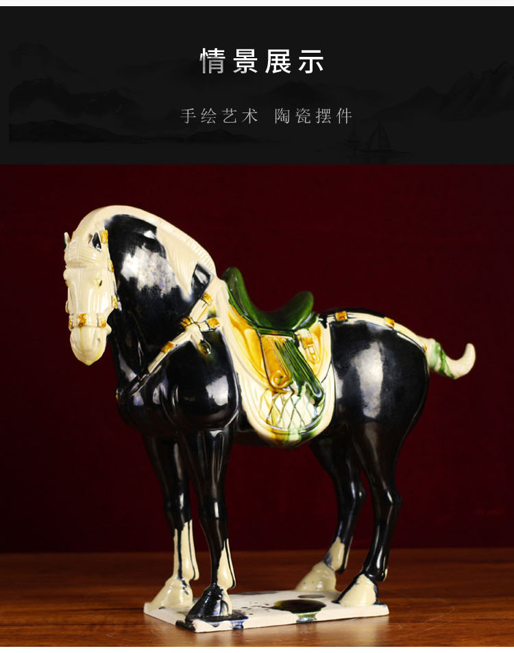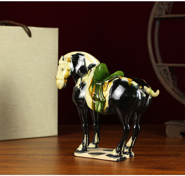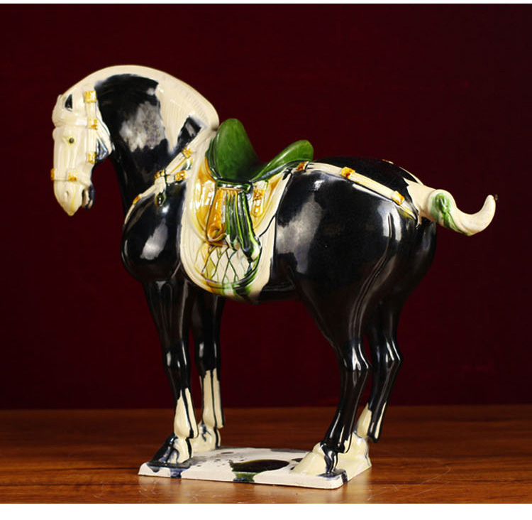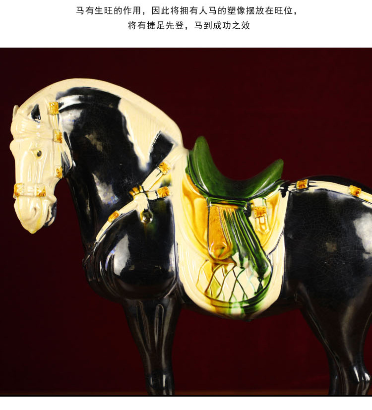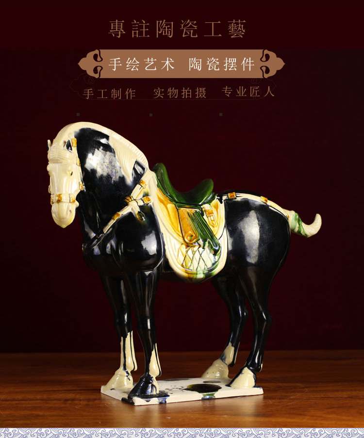 唐三彩仿古中國馬 中式家具裝飾品陶瓷馬駝擺件 工藝品馬 招財1入