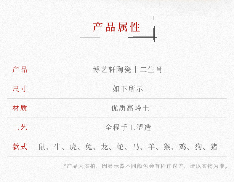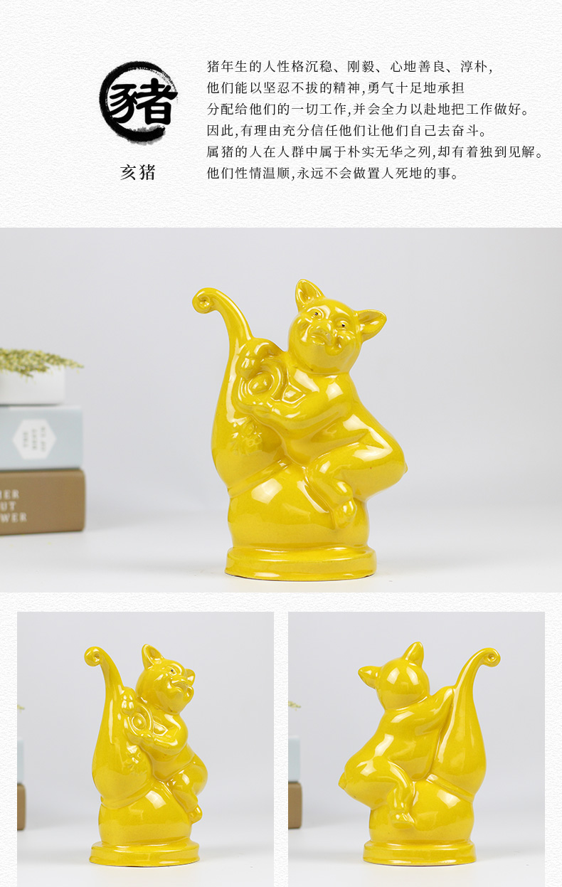 陶瓷十二生肖鼠牛虎兔龍蛇馬羊猴狗羊雞狗豬工藝品家居裝飾品禮品1入