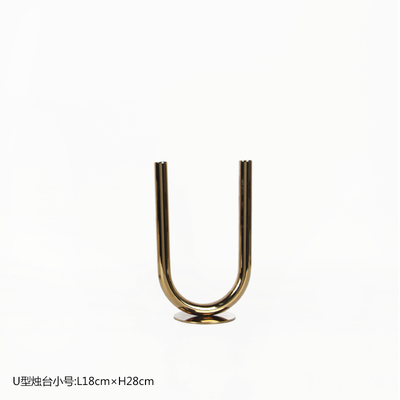 不銹鋼U型裝飾燭臺擺件 歐式現代樣板房別墅酒店餐廳客廳玄關燭臺1入