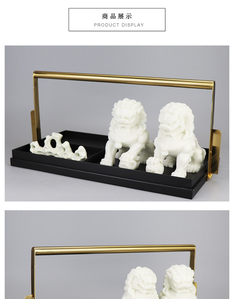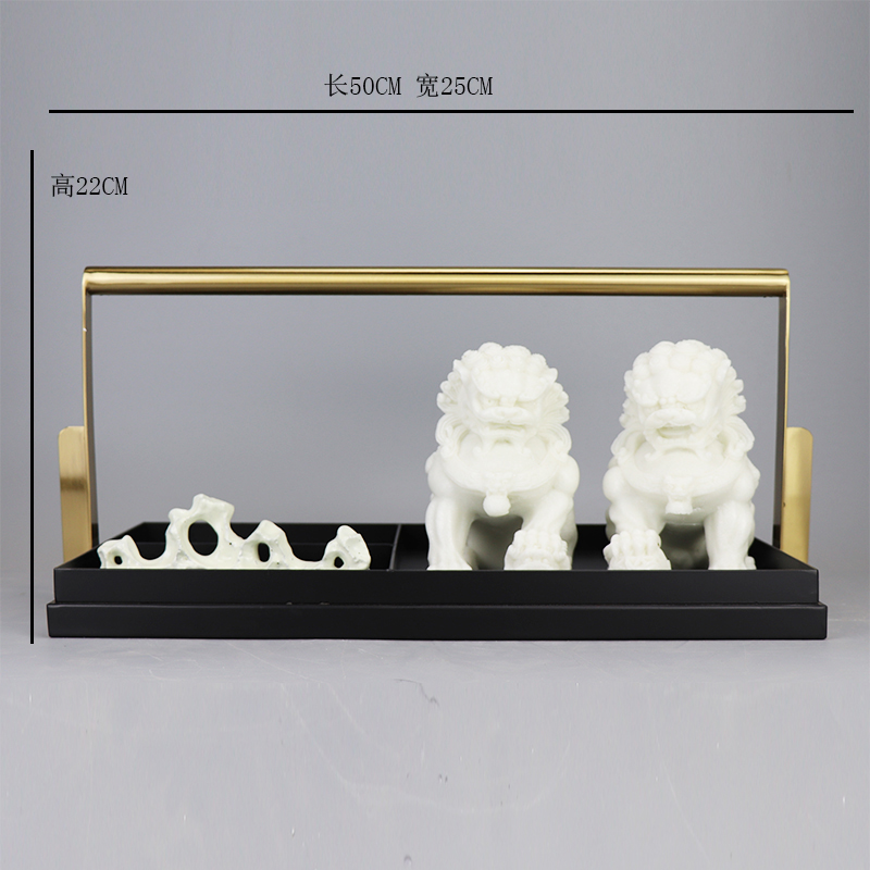 新中式提籃托盤分格盒擺件簡約現代樣板房客廳茶幾白獅子軟裝飾品1入