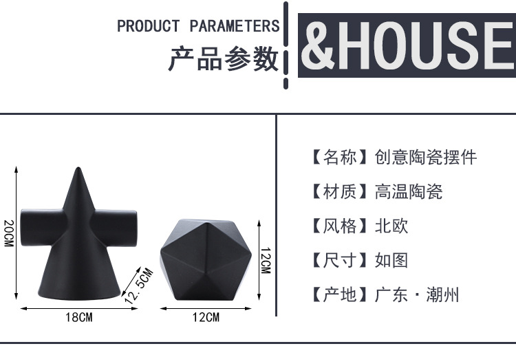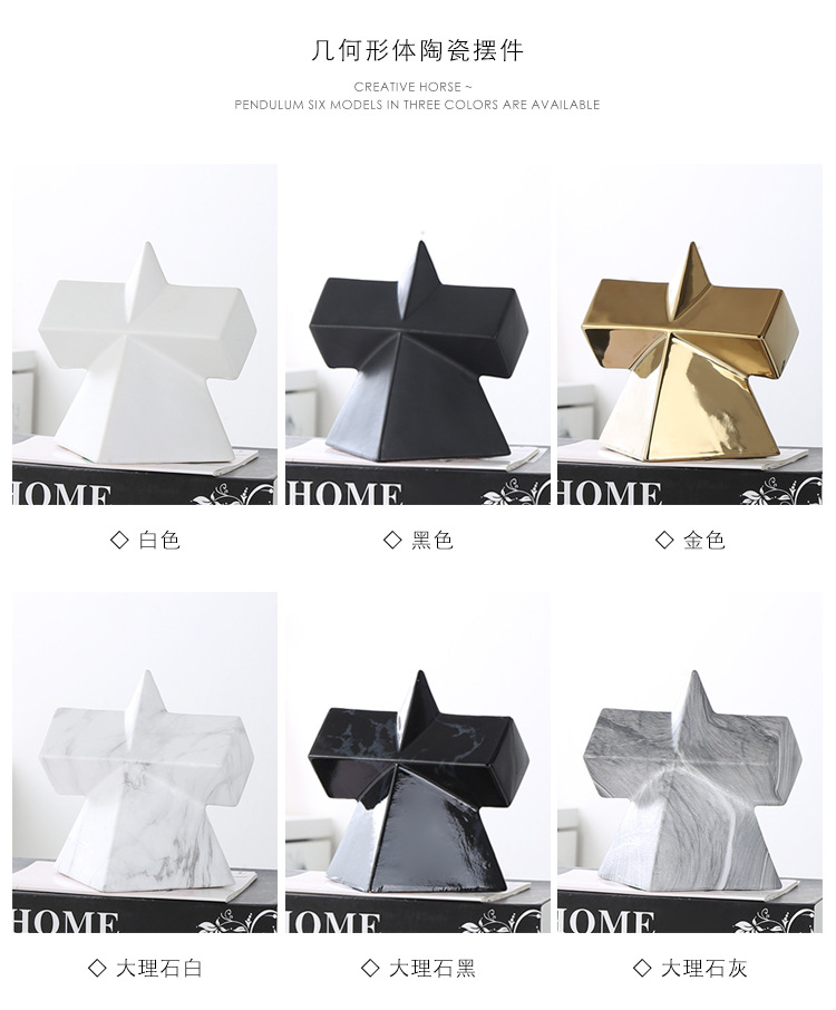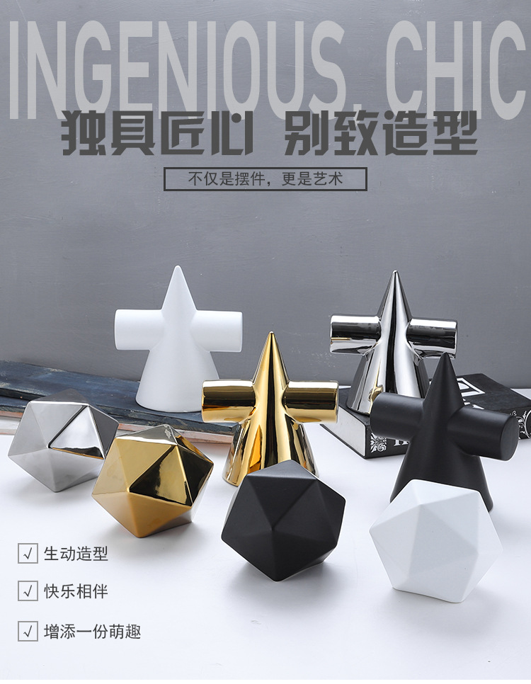 創意北歐不規則陶瓷抽象幾何擺件 家居軟裝樣板間工藝品裝飾品1入