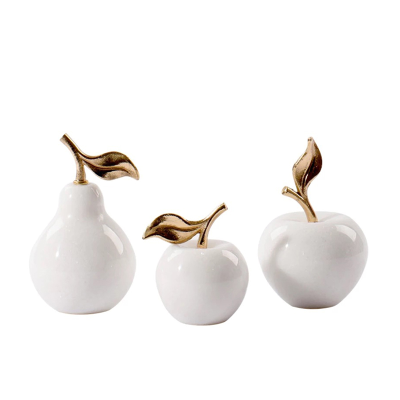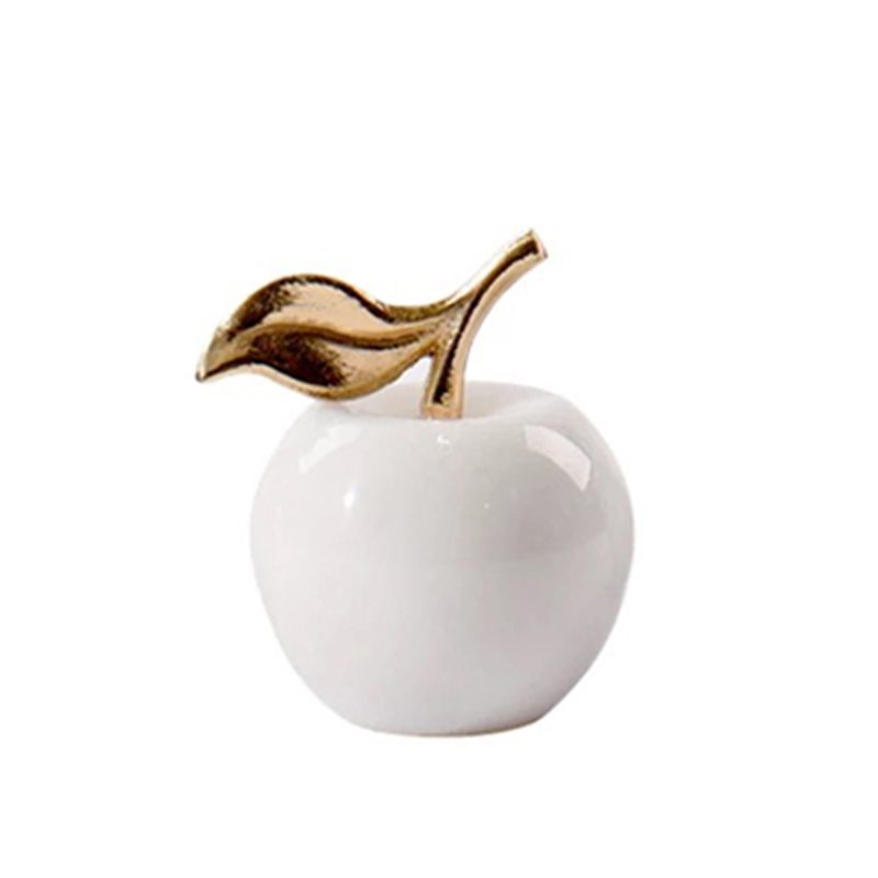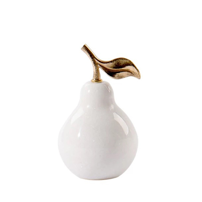 北歐樣板間白色大理石蘋果梨子擺件現代簡約家居創意水果軟裝飾品1入