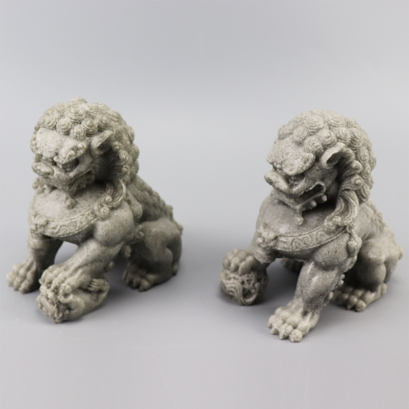 新中式古典石獅子擺件樣板房家居客廳茶幾柜玄關禪意軟裝飾工藝品1入