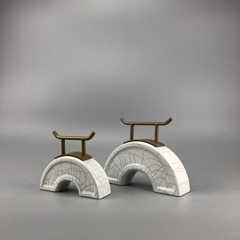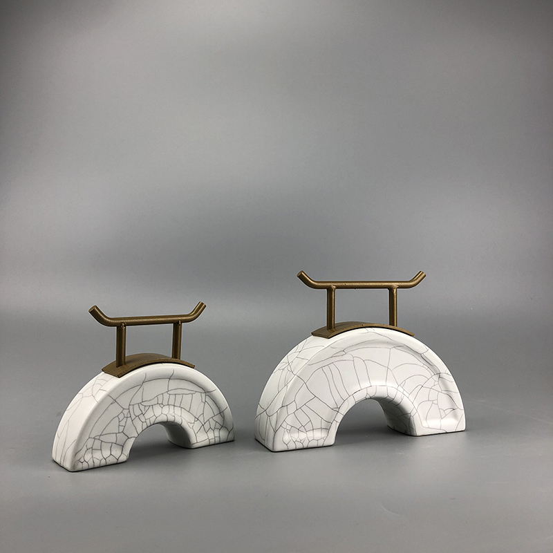 現代新中式家居軟裝飾品辦公室樣板房間玄關陶瓷鐵藝創意拱橋擺件1入