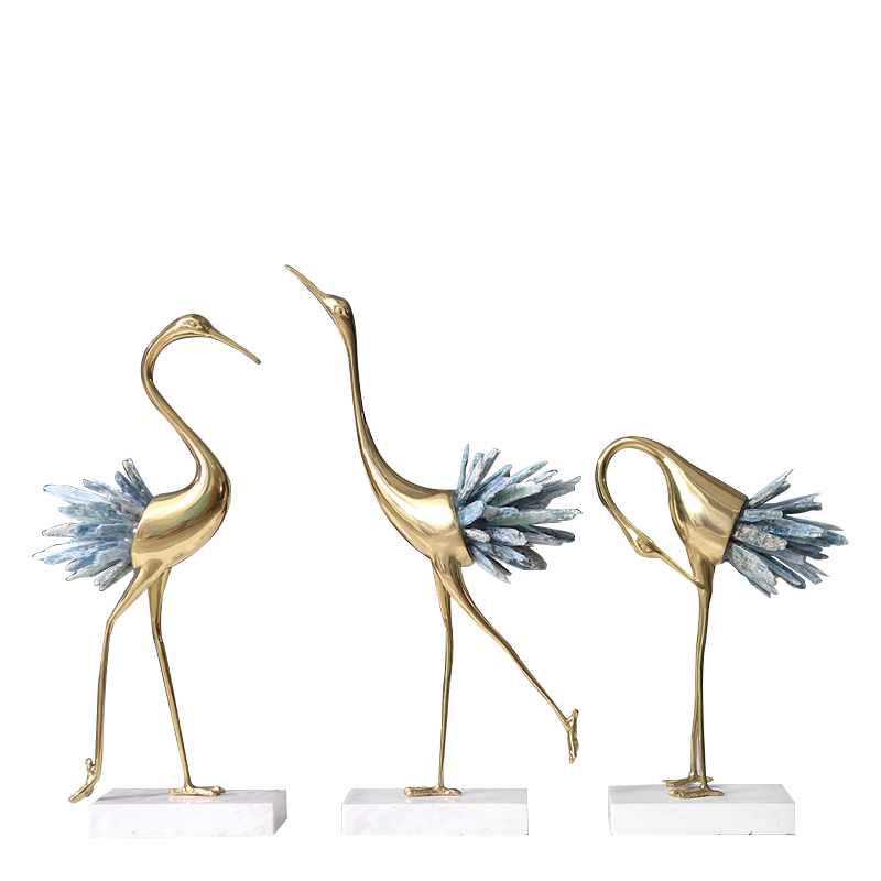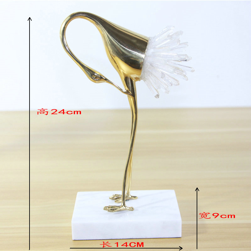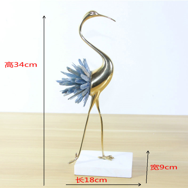 新中式水晶仙鶴銅擺件輕奢歐式現代客廳家居金屬裝飾品樣板間飾品1入