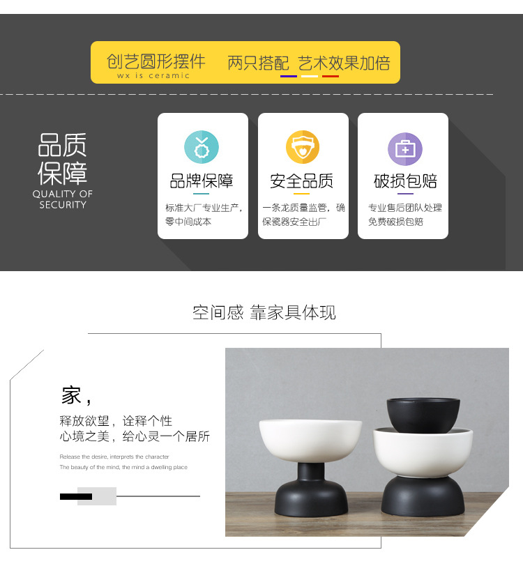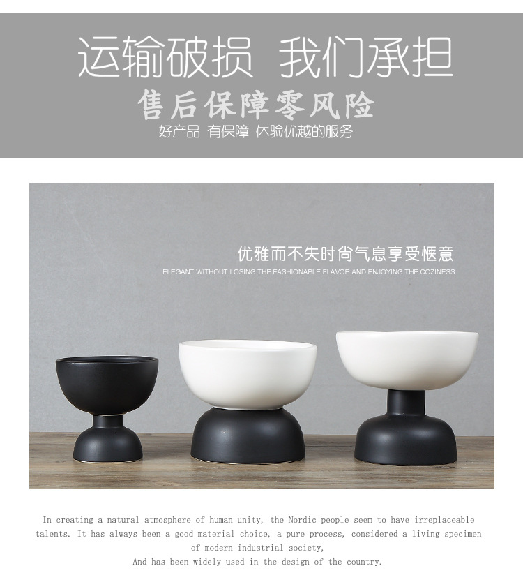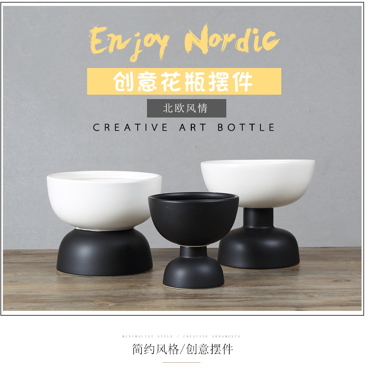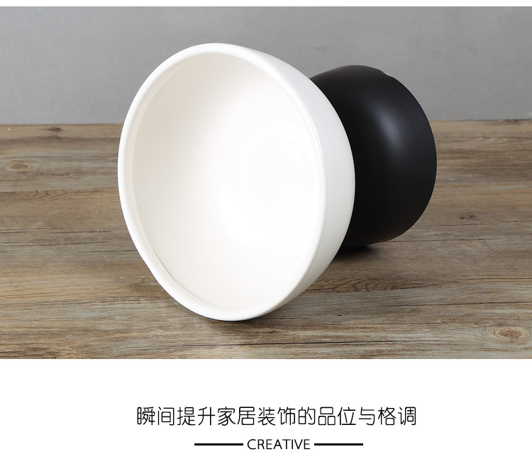 創意黑白雙色拼接陶瓷軟裝擺件 北歐風家居樣板房擺設工藝品1入