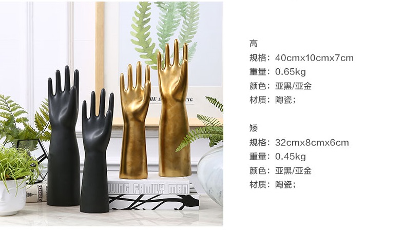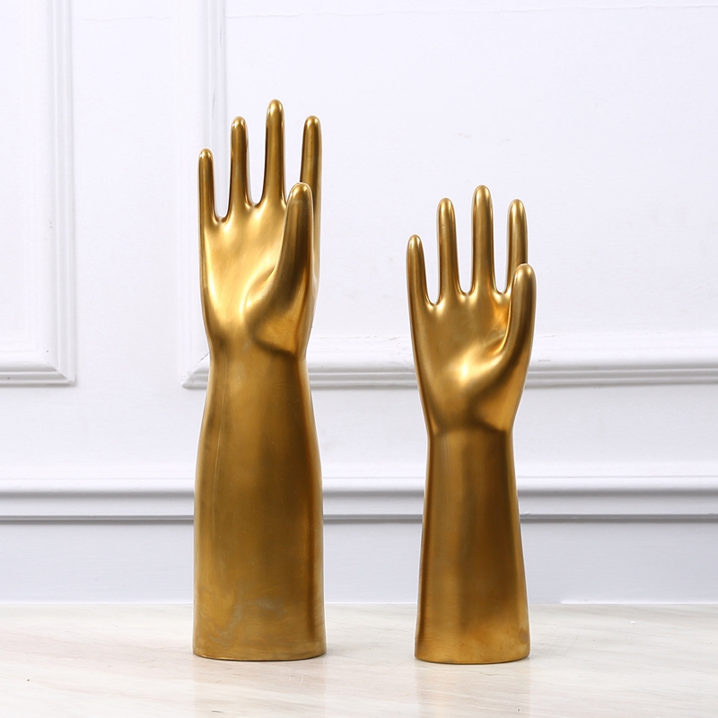 現代家居裝飾擺件 創意金色手臂工藝品 樣板房書房玄關陶瓷裝飾品1入