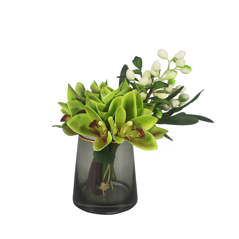 北歐現代樣板房售樓處洽談桌餐桌軟裝仿真花藝玻璃花瓶套裝擺件1入