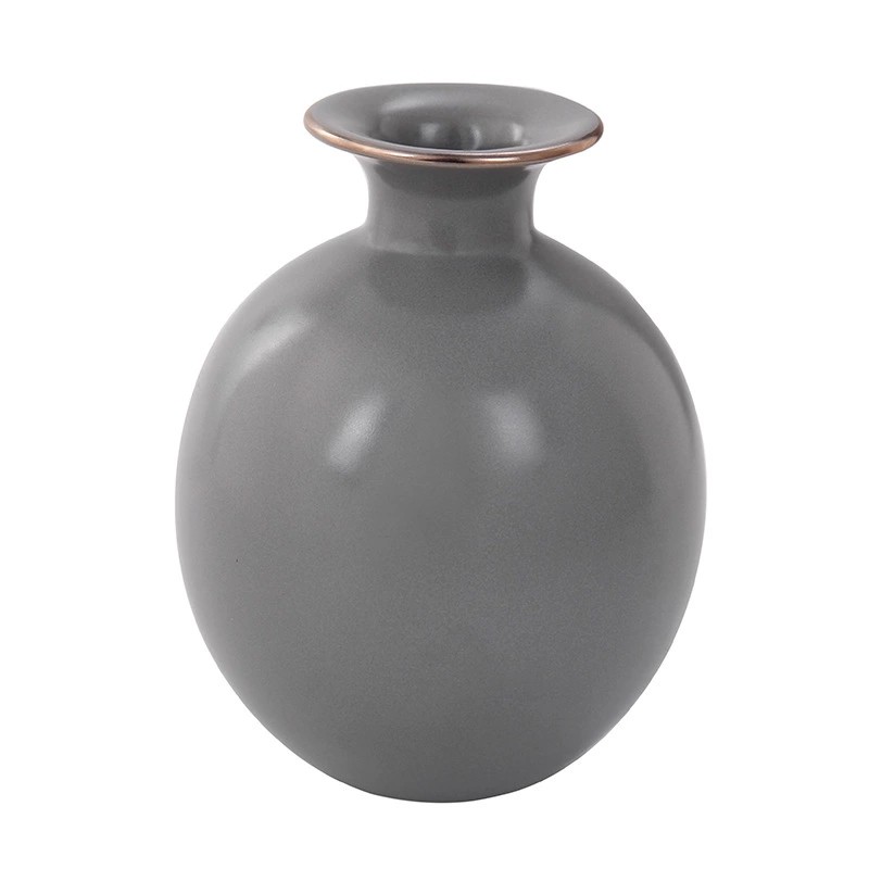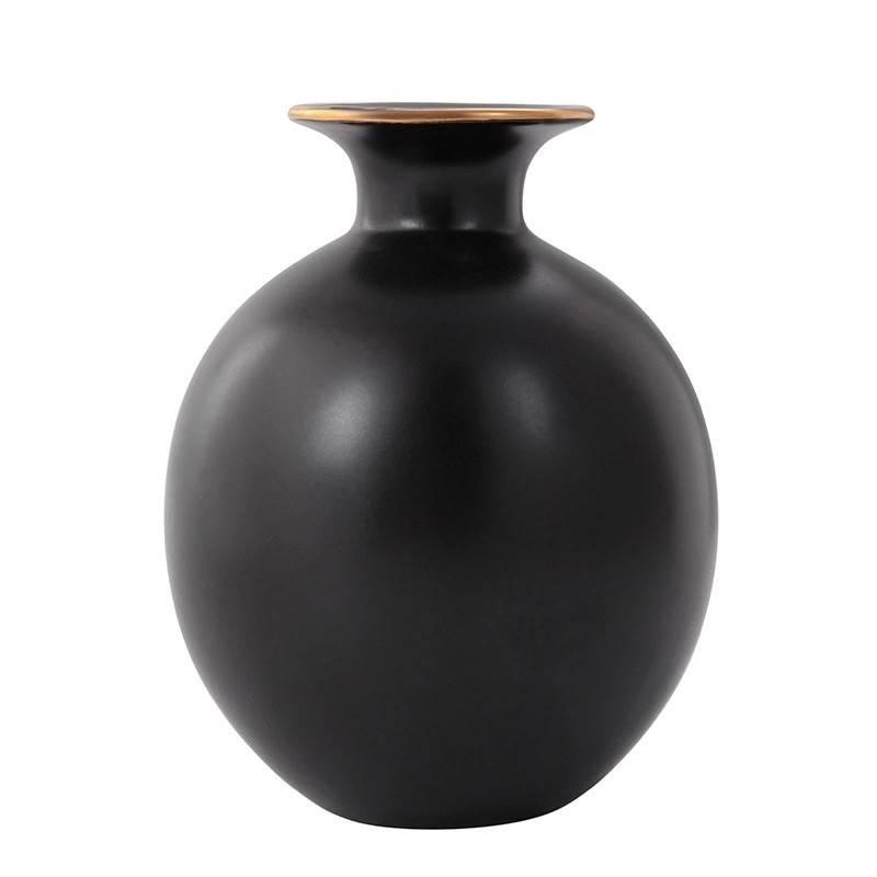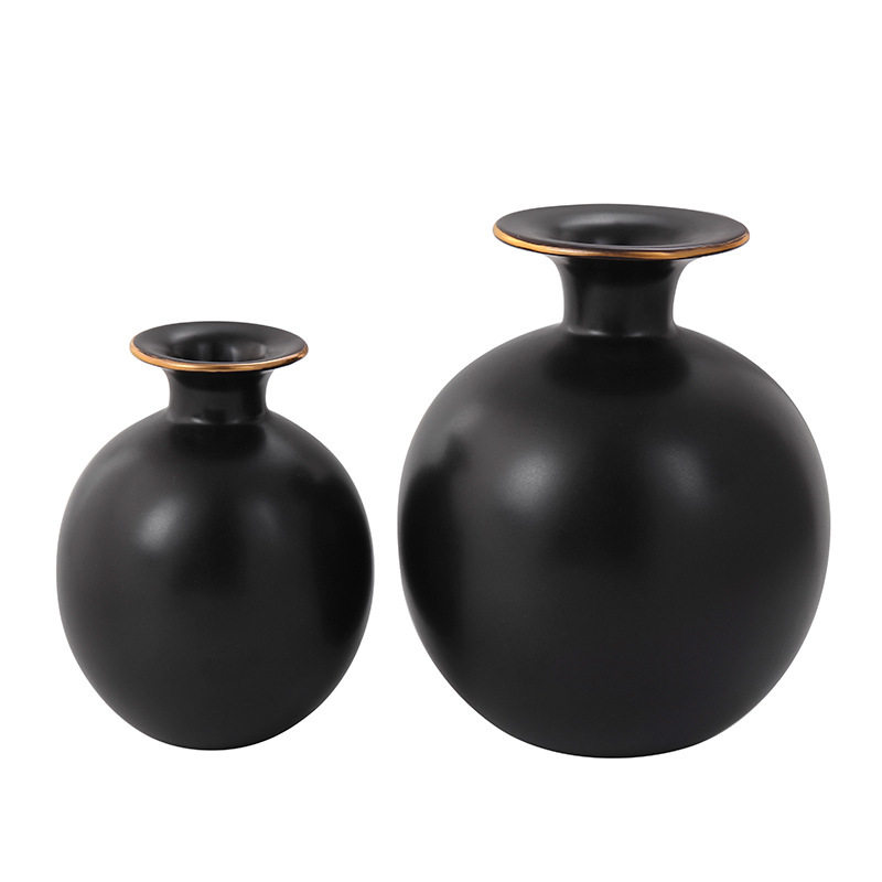極簡輕奢創意家居軟裝飾品圓形花器擺設黑色灰色大肚陶瓷花瓶擺件1入