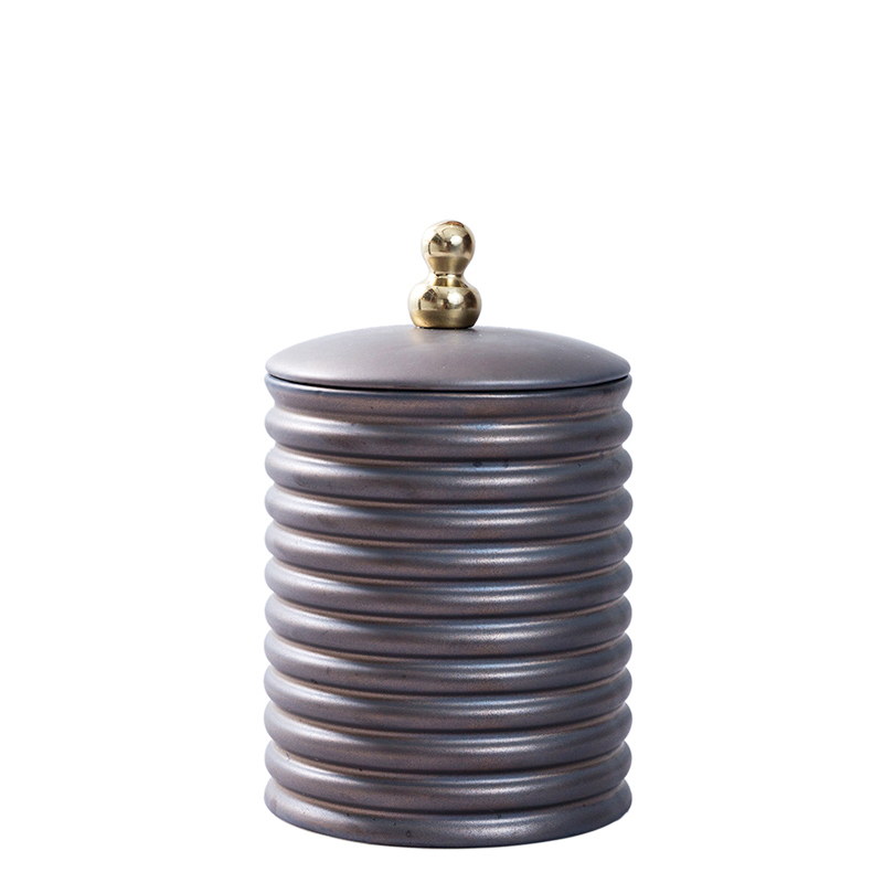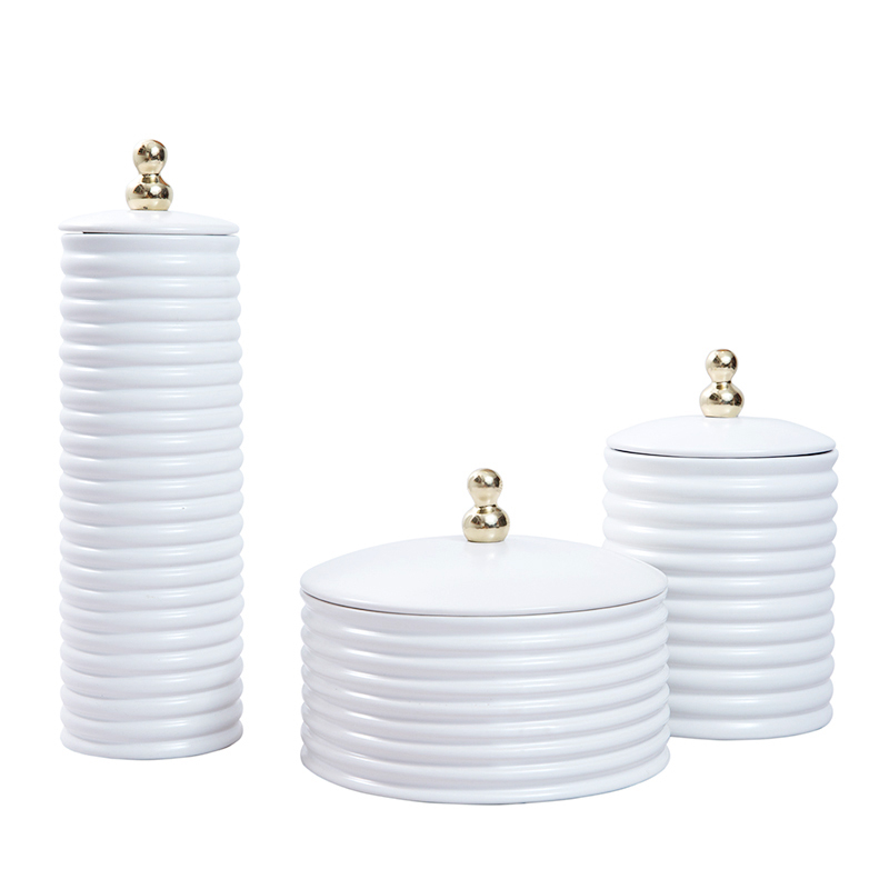 北歐家居飾品客廳博古架裝飾罐創意工藝品陶瓷儲物罐擺件旋紋蓋罐1入