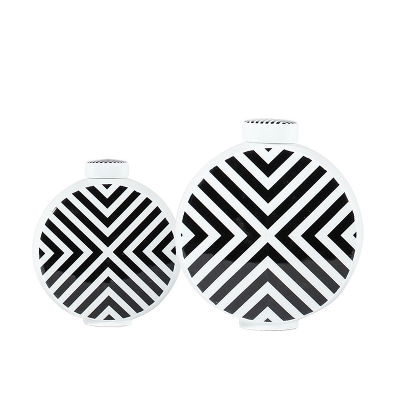 簡約現代樣板間客廳飾品擺設北歐家居創意裝飾品黑白陶瓷罐子擺件1入