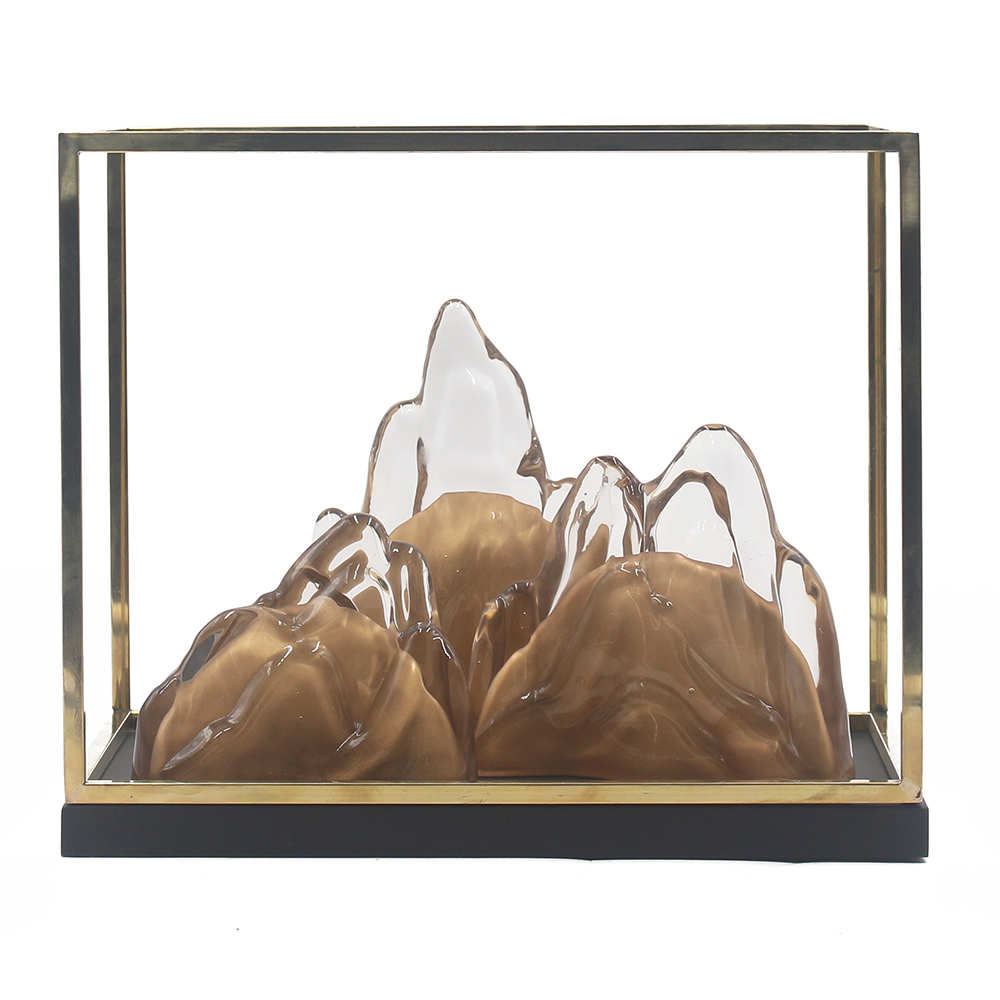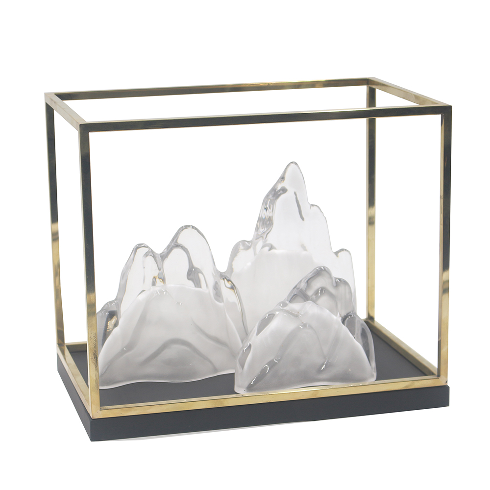 現代新中式樣板房家居水晶透明假山風水擺件酒店售樓處軟裝工藝品1入