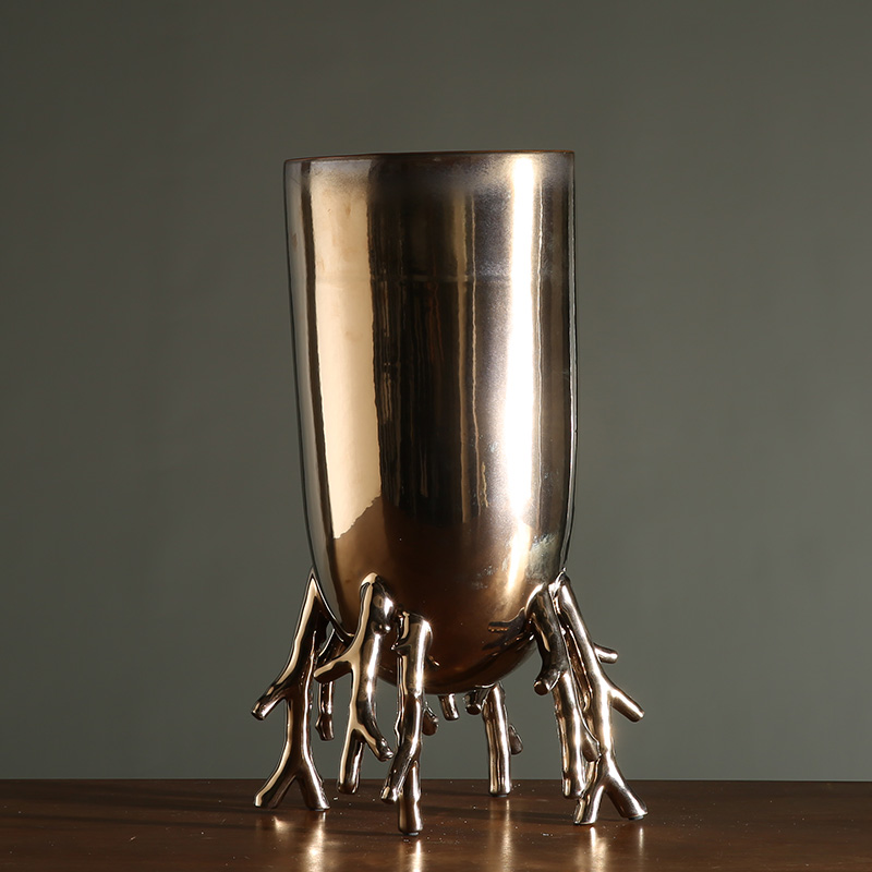 客廳落地大花瓶擺件 創意陶瓷藝術插花花器軟裝飾擺件 樹根花瓶1入
