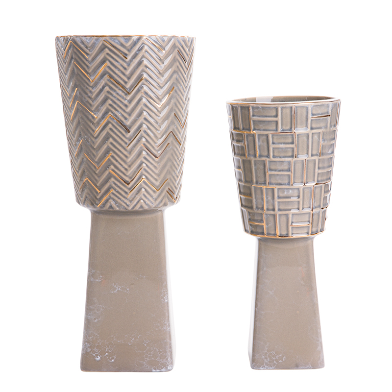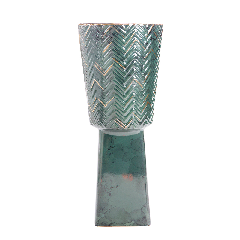 新品餐桌裝飾藝術插花花器 中式復古花瓶創意陶瓷工藝高腳收口鼎1入