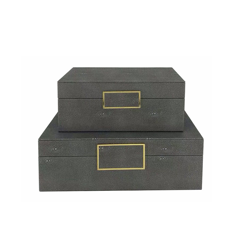 白色魔鬼魚實木收納盒簡約現代復古金屬卡扣首飾盒家具城軟裝擺設1入