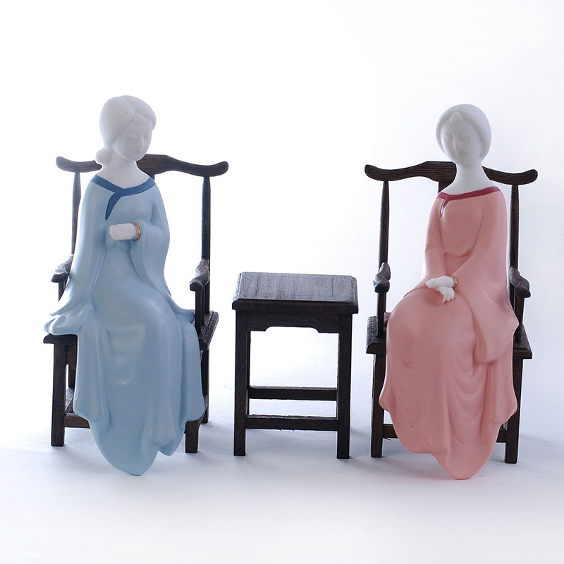 中式禪意砂巖工藝品擺件玄關客廳博古架裝飾仕女家居創意新品擺件1入