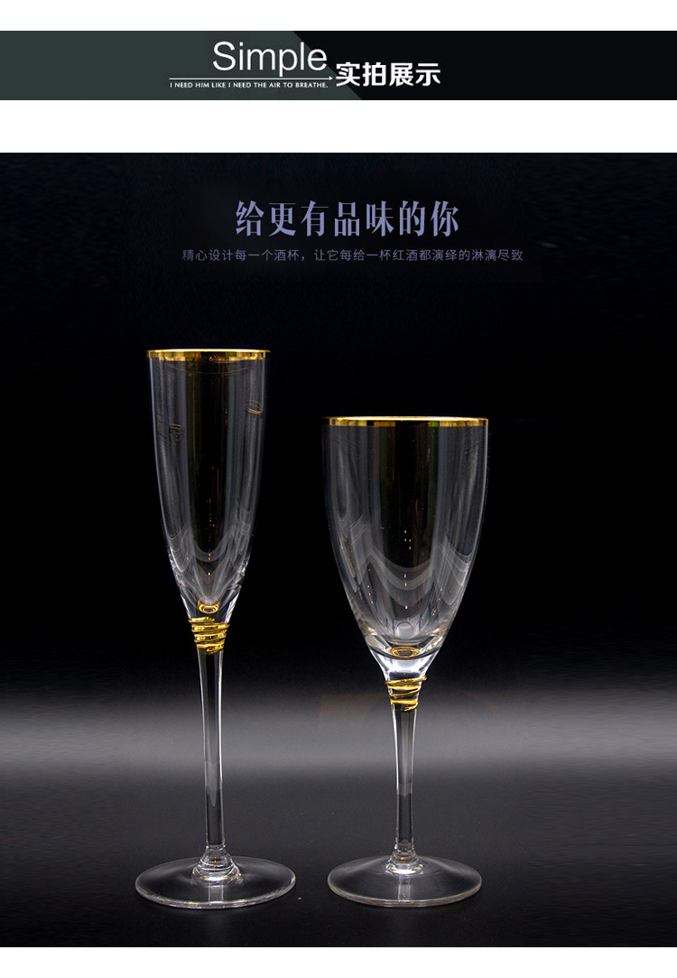 現代輕奢樣板間描金手工玻璃紅酒杯香檳杯套裝餐桌家居裝飾擺設1入