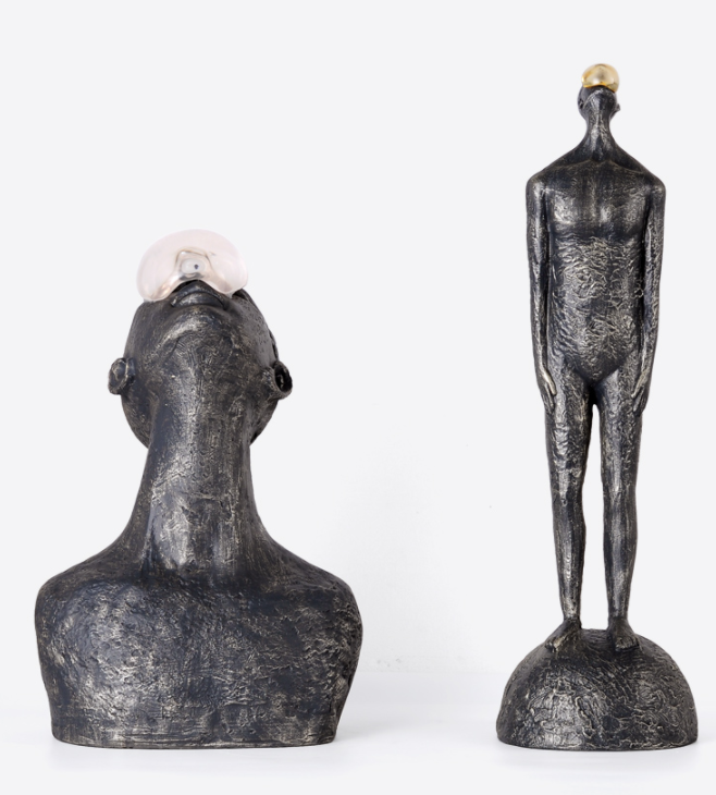 北歐玄關抽象人物雕塑樹脂擺件樣板房售樓處樣板房間復古軟裝飾品1入