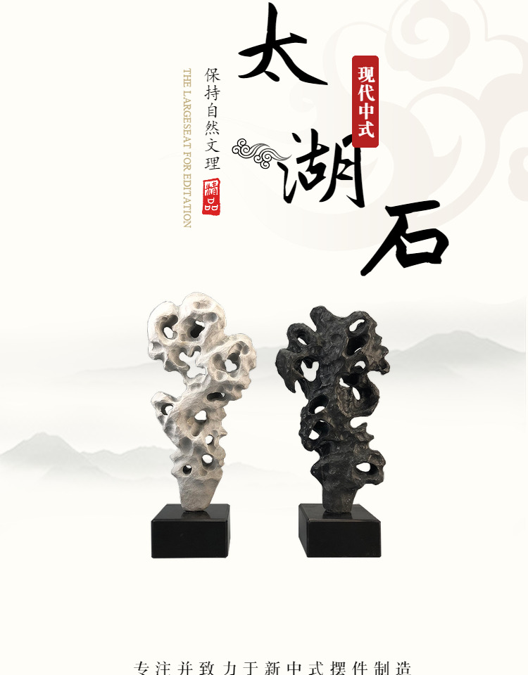 現代新中式創意太湖石石頭工藝品擺件樣板間酒柜電視柜玄關裝飾品1入