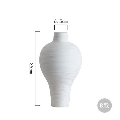 現代極簡粗陶手工花瓶樣板房家居裝飾軟裝飾品干花花插桌面擺件1入