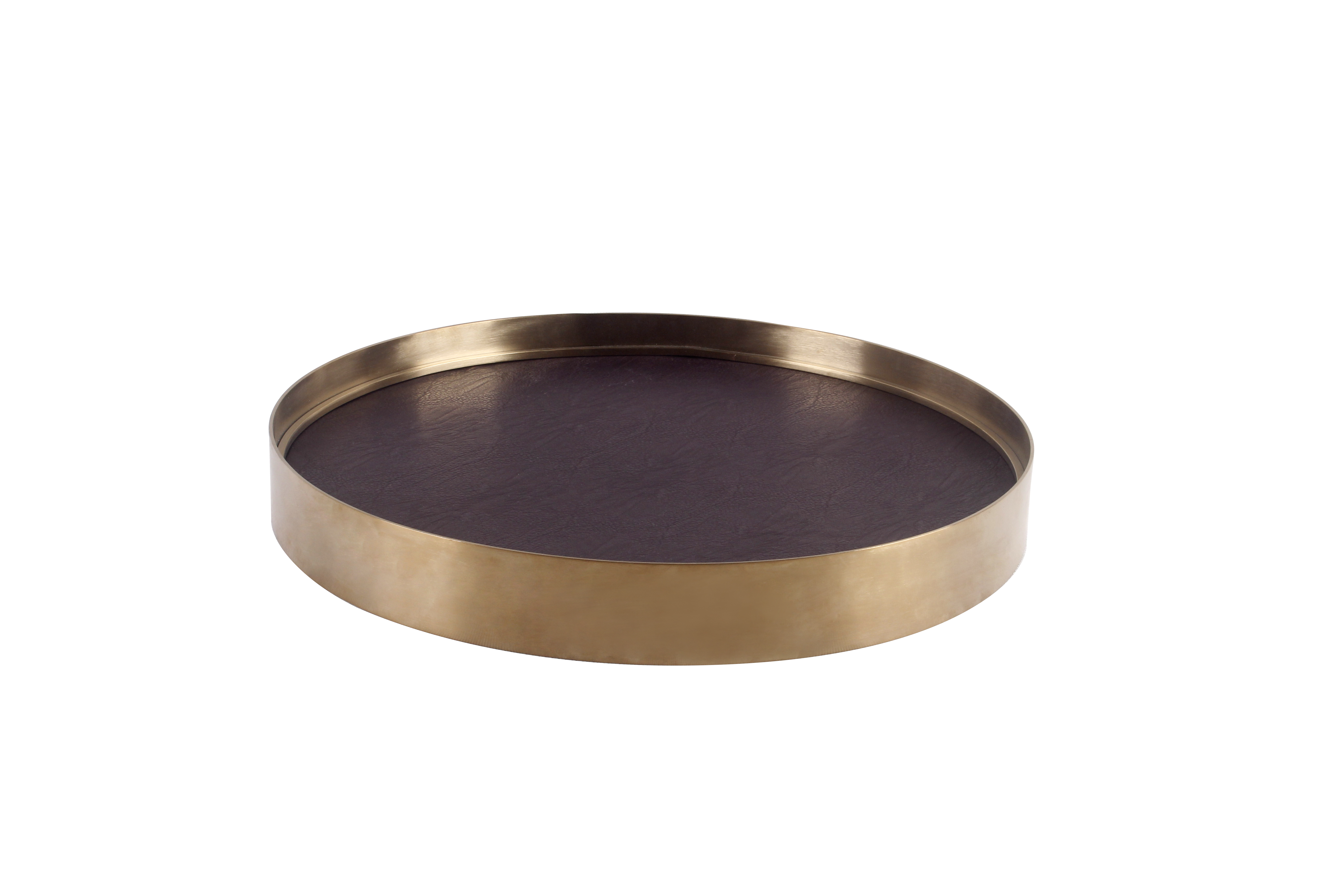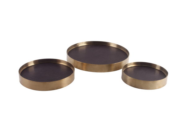 北歐別墅后現代簡約輕奢家居軟裝飾品黃銅金屬托盤圓形樣板房擺件1入