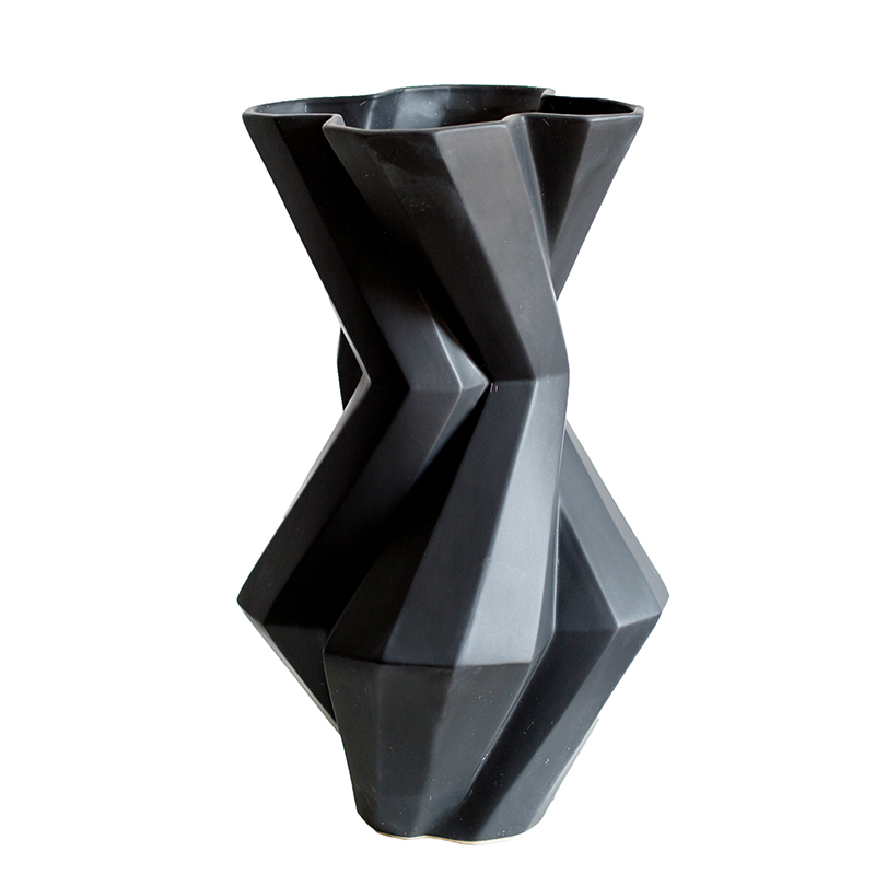 設計師會所樣板房軟裝擺件 現代北歐幾何黑白陶瓷素燒花瓶花器大1入