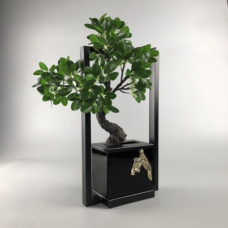 現代新中式仿真榕樹祥云擺設軟裝高檔酒店樣板房玄關家居飾品擺件1入