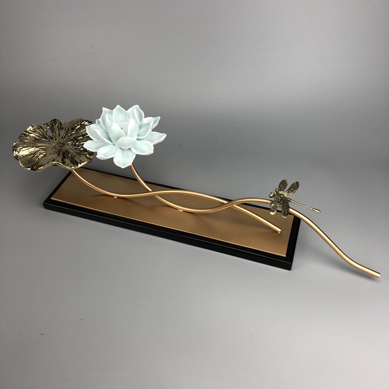 新中式現代創意陶瓷銅荷花擺件樣板房客廳酒柜玄關電視柜軟裝飾品1入