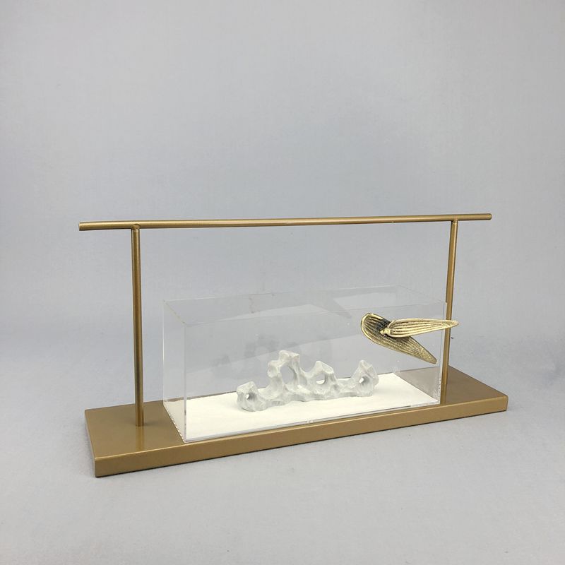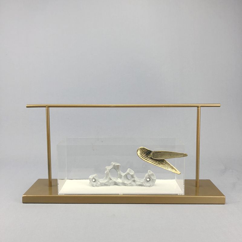 現代新中式創意書房高檔鐵藝太湖石擺件樣板房酒店書房軟裝飾品1入