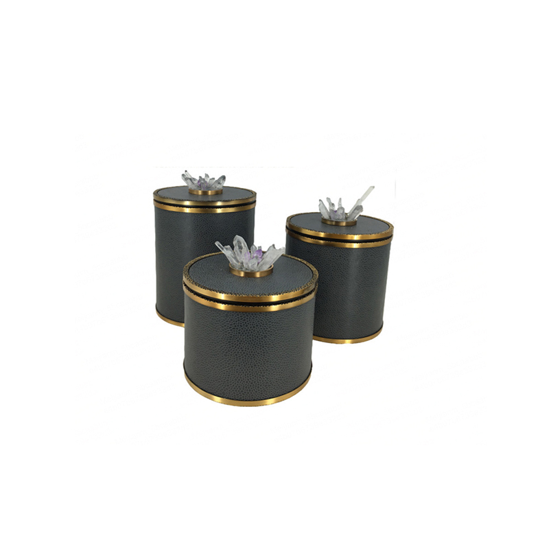 輕奢現代簡約樣板房儲物罐首飾盒黑色皮紋臥室擺件 收納盒工藝品1入