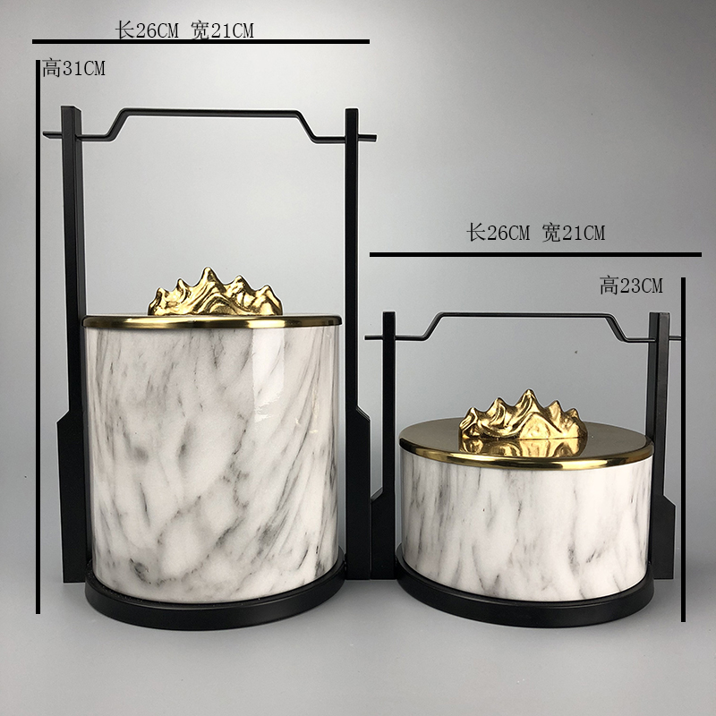 新中式現代創意鐵藝裝飾罐擺件樣板房間家居客廳電視柜酒柜工藝品1入