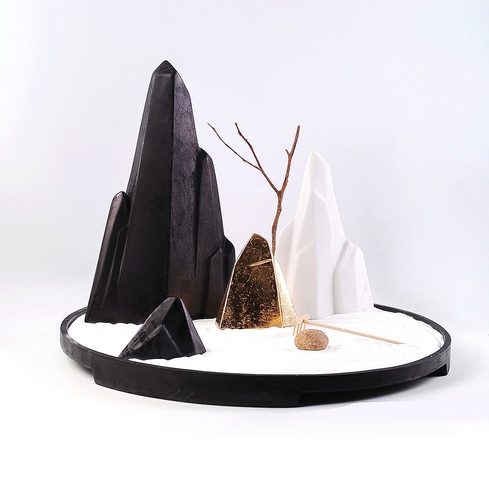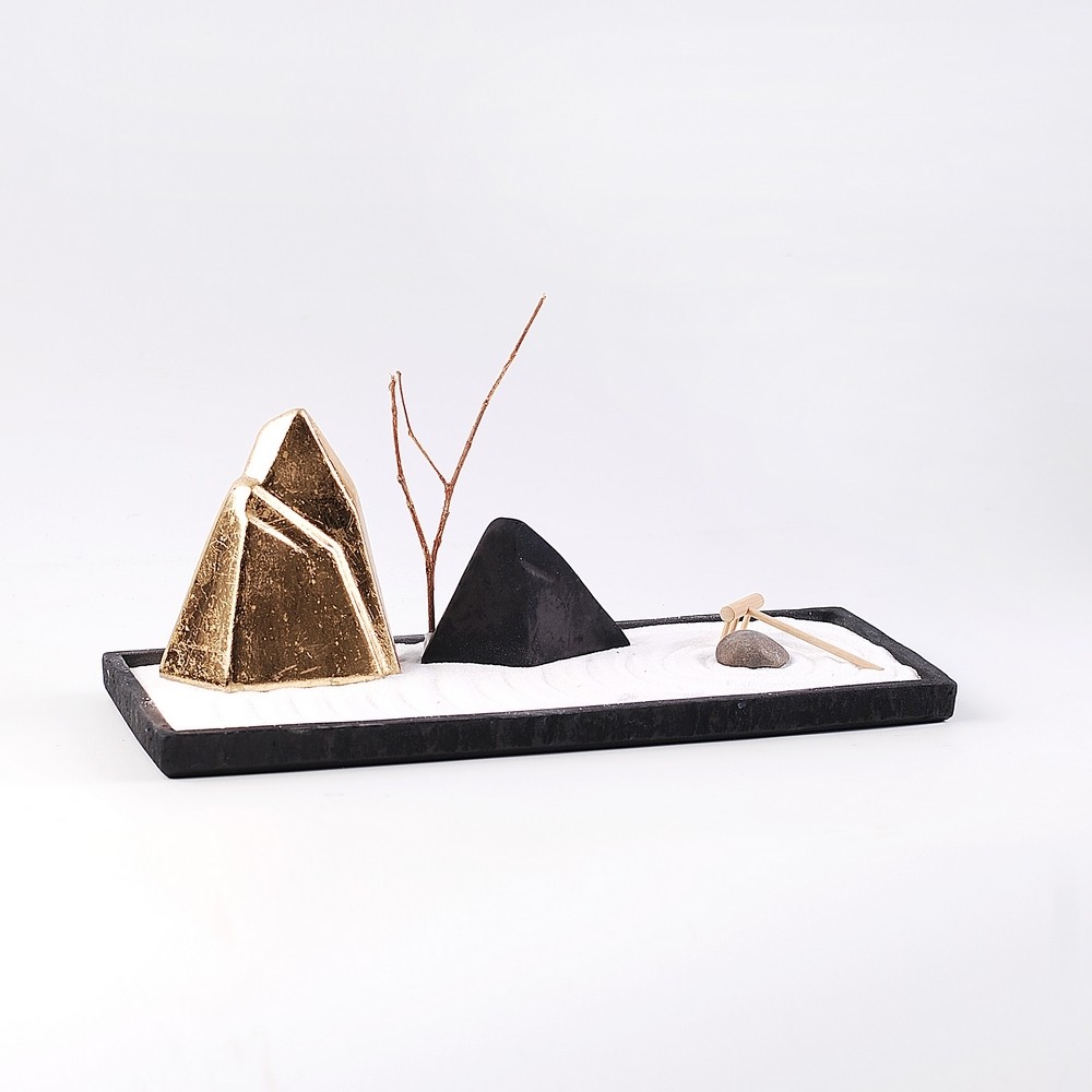樣板間枯山水景觀裝飾新中式軟裝飾品茶幾書桌擺件沙盤套裝組合1入