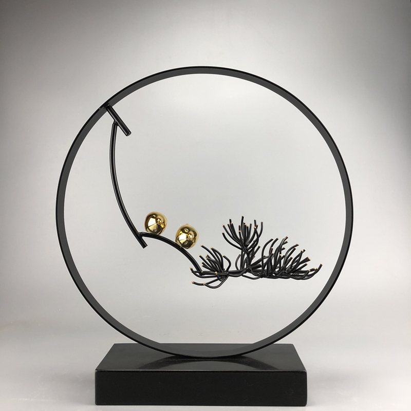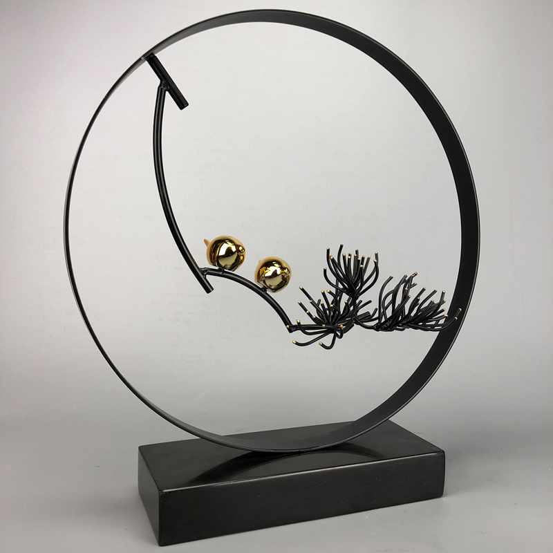 現代新中式創意鐵藝工藝品擺件 樣板房間家居玄關電視柜軟裝飾品1入