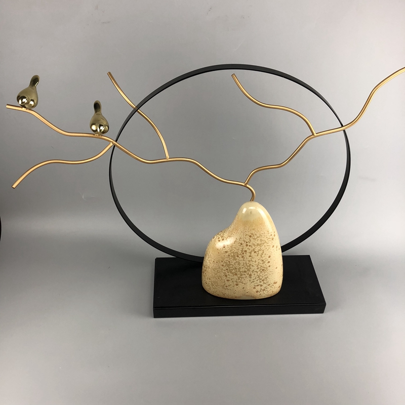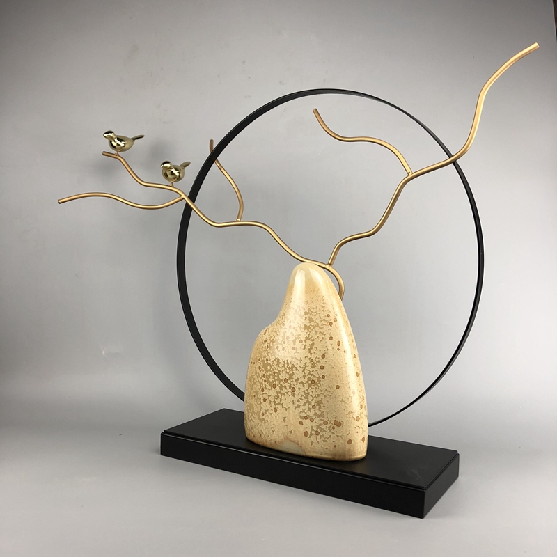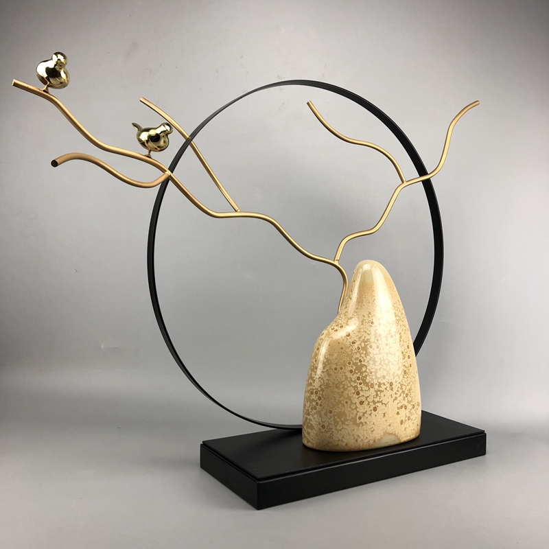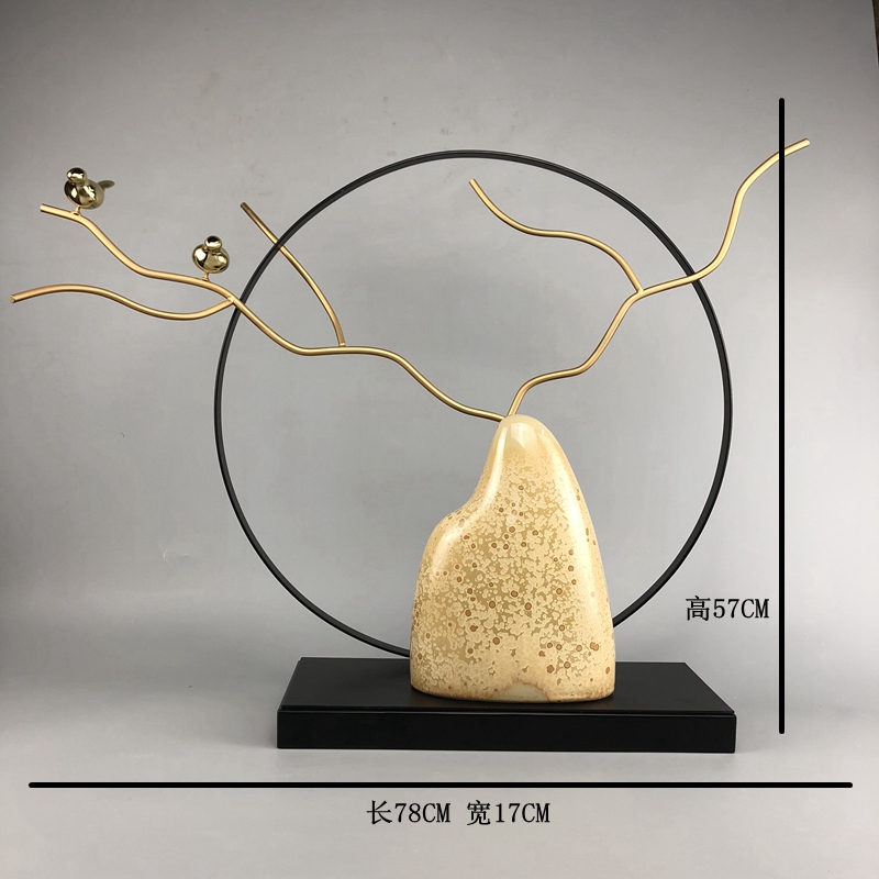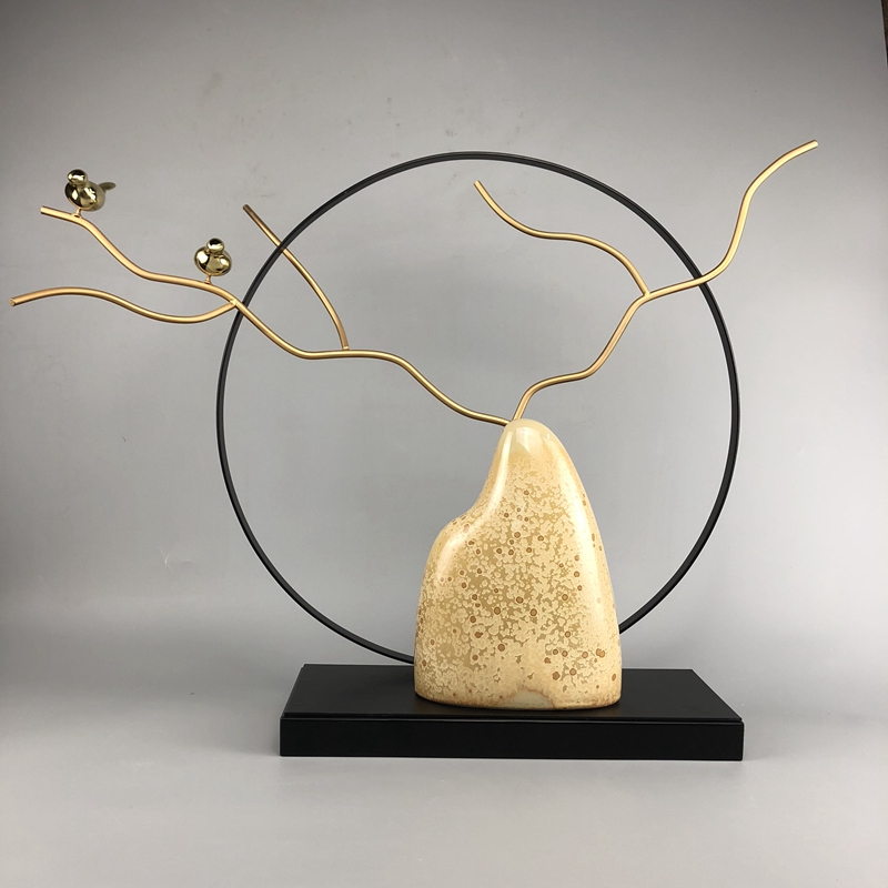 現代中式創意陶瓷金屬擺件酒店玄關高檔擺設樣板房軟裝工藝品擺件1入