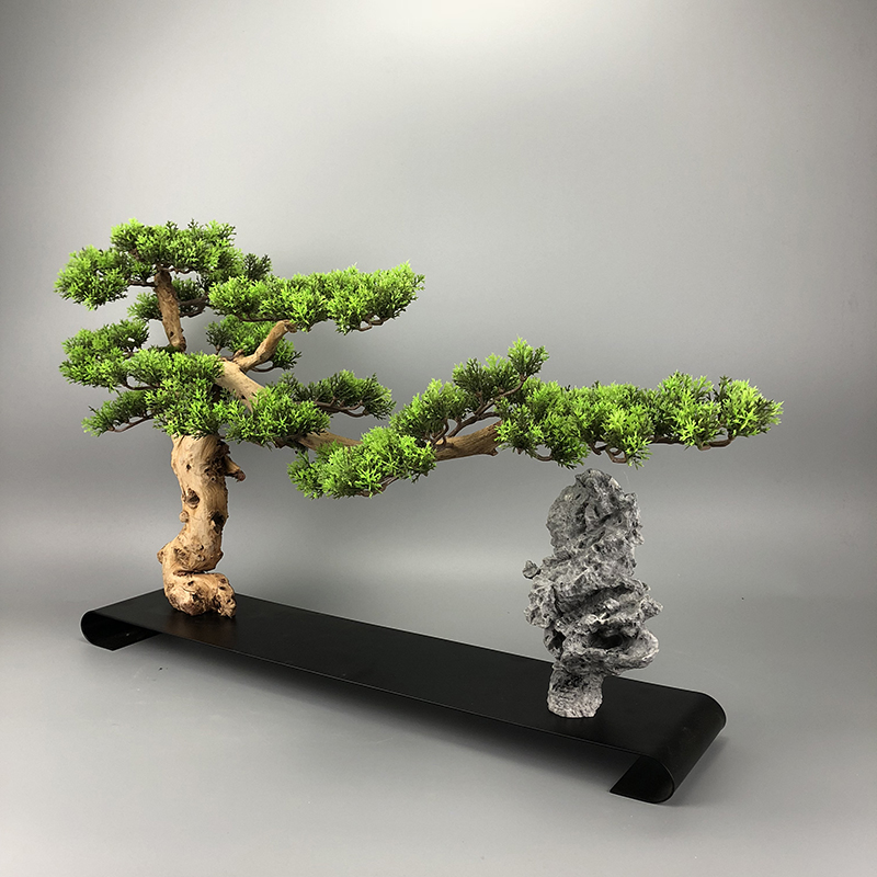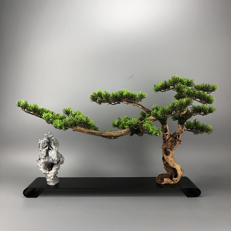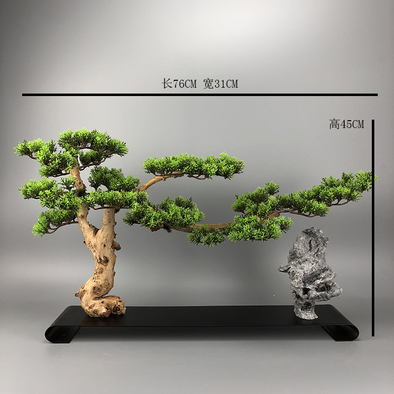現代新中式仿真迎客松羅漢松柏樹盆景盆栽樣板房間售樓處玄關擺件1入