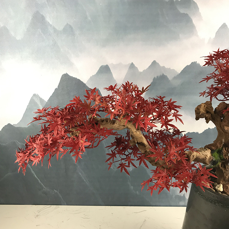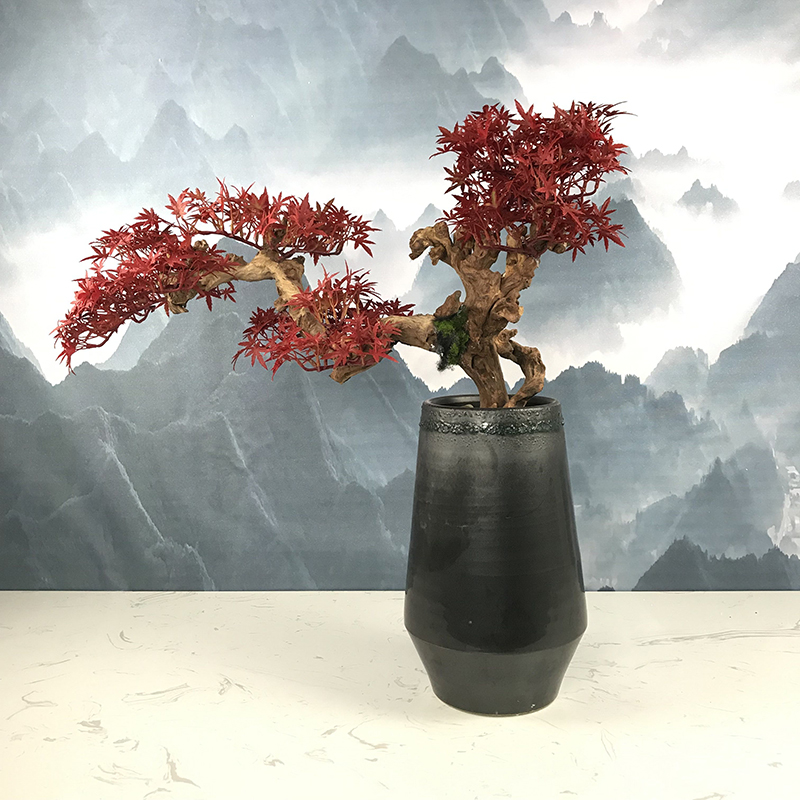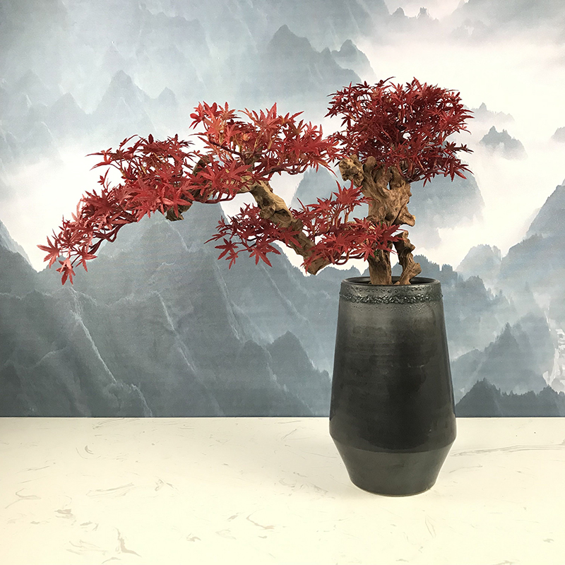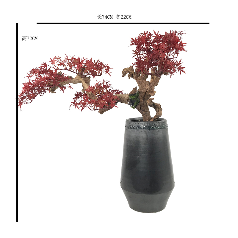 現代新中式日式陶瓷罐仿真紅色楓葉雞爪楓樹玄關餐桌餐廳茶室擺件1入